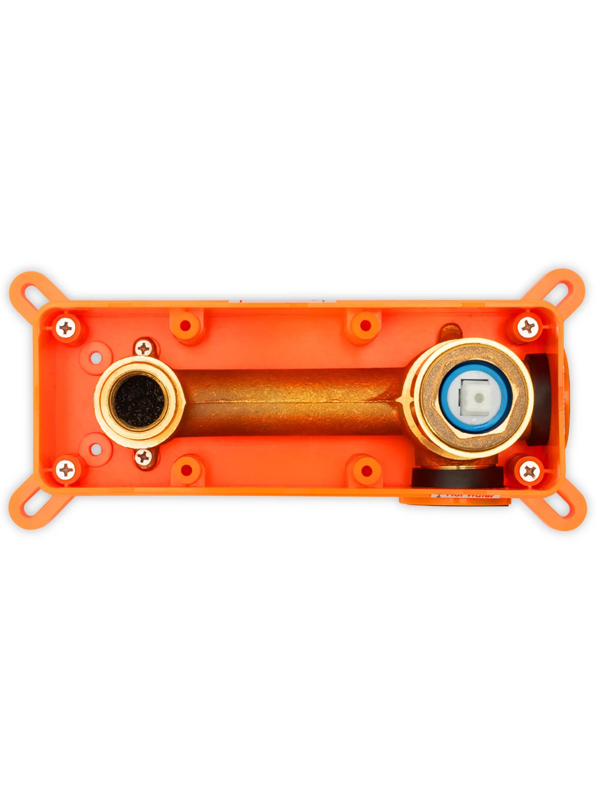 Model przeznaczony jest do montażu ściennego i wyposażony w innowacyjny system zabudowy BOX, który znacząco ułatwia montaż i konserwację. System został wykonany z trwałego tworzywa sztucznego oraz mosiężnych elementów wewnętrznych, co zapewnia niezawodność i odporność na uszkodzenia. Część maskująca chroni elementy instalacyjne podczas montażu, a wbudowana poziomica ułatwia precyzyjne wypoziomowanie baterii.