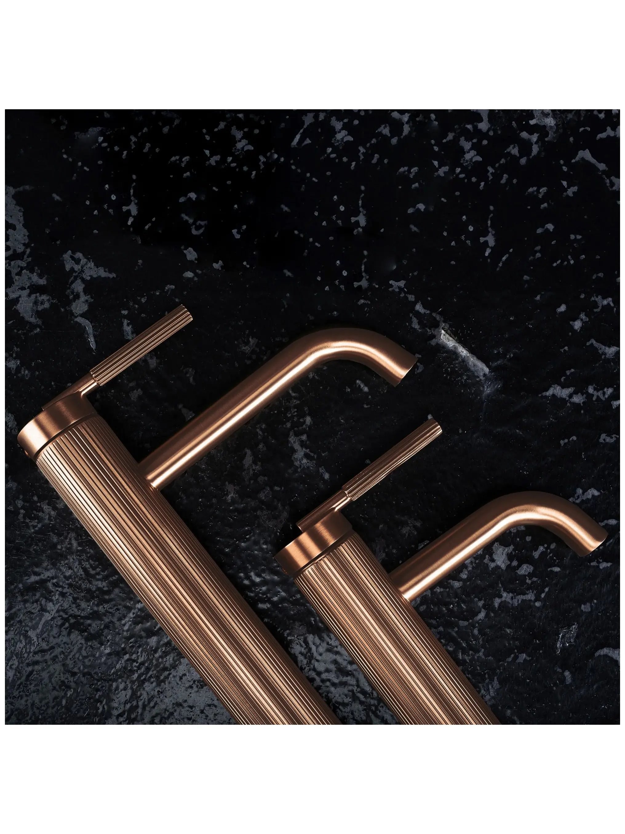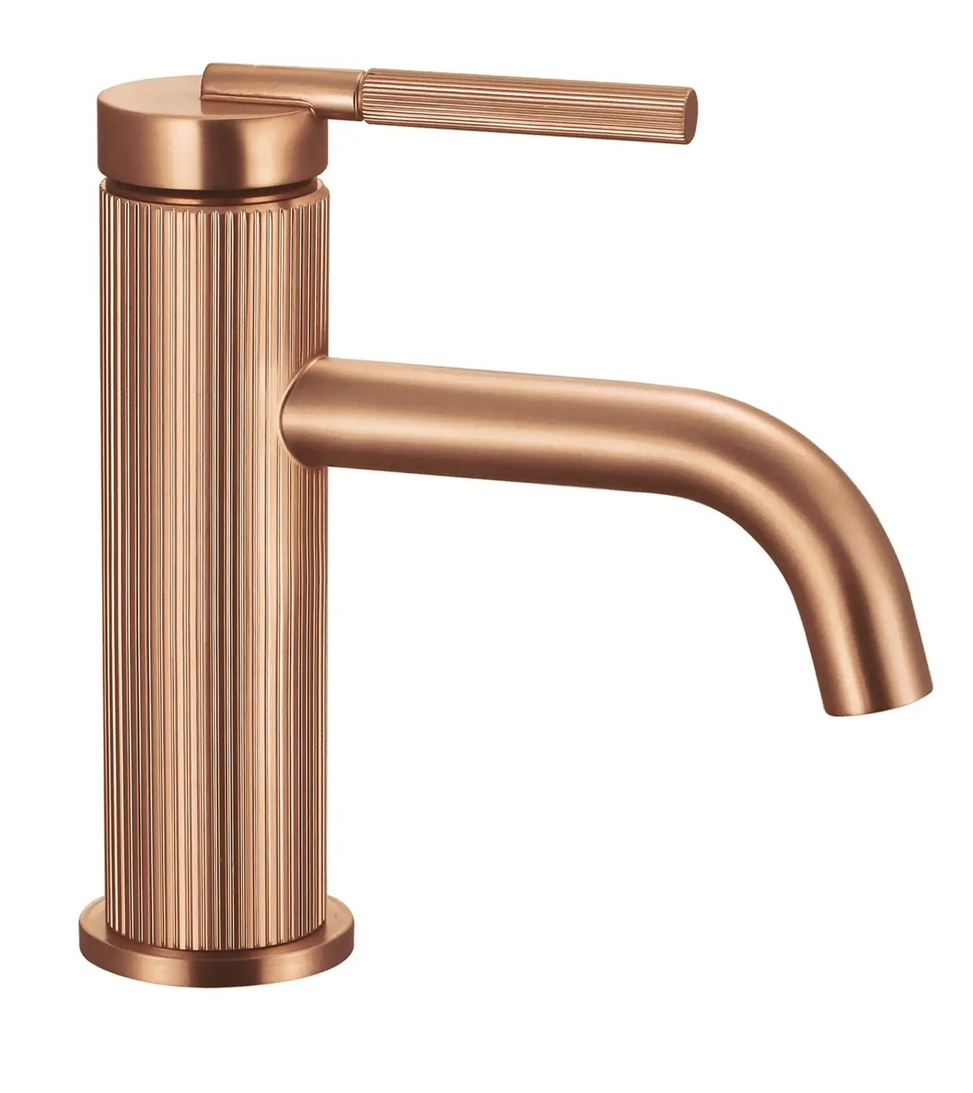 Bateria umywalkowa Rea Argon Miedź Szczotkowana to idealne połączenie nowoczesnego wzornictwa, funkcjonalności i trwałości. Jej niska forma z charakterystycznym, ryflowanym korpusem nadaje całości eleganckiego, wyrafinowanego charakteru, doskonale wpisując się w aranżacje w stylu loftowym, glamour czy modern classic.