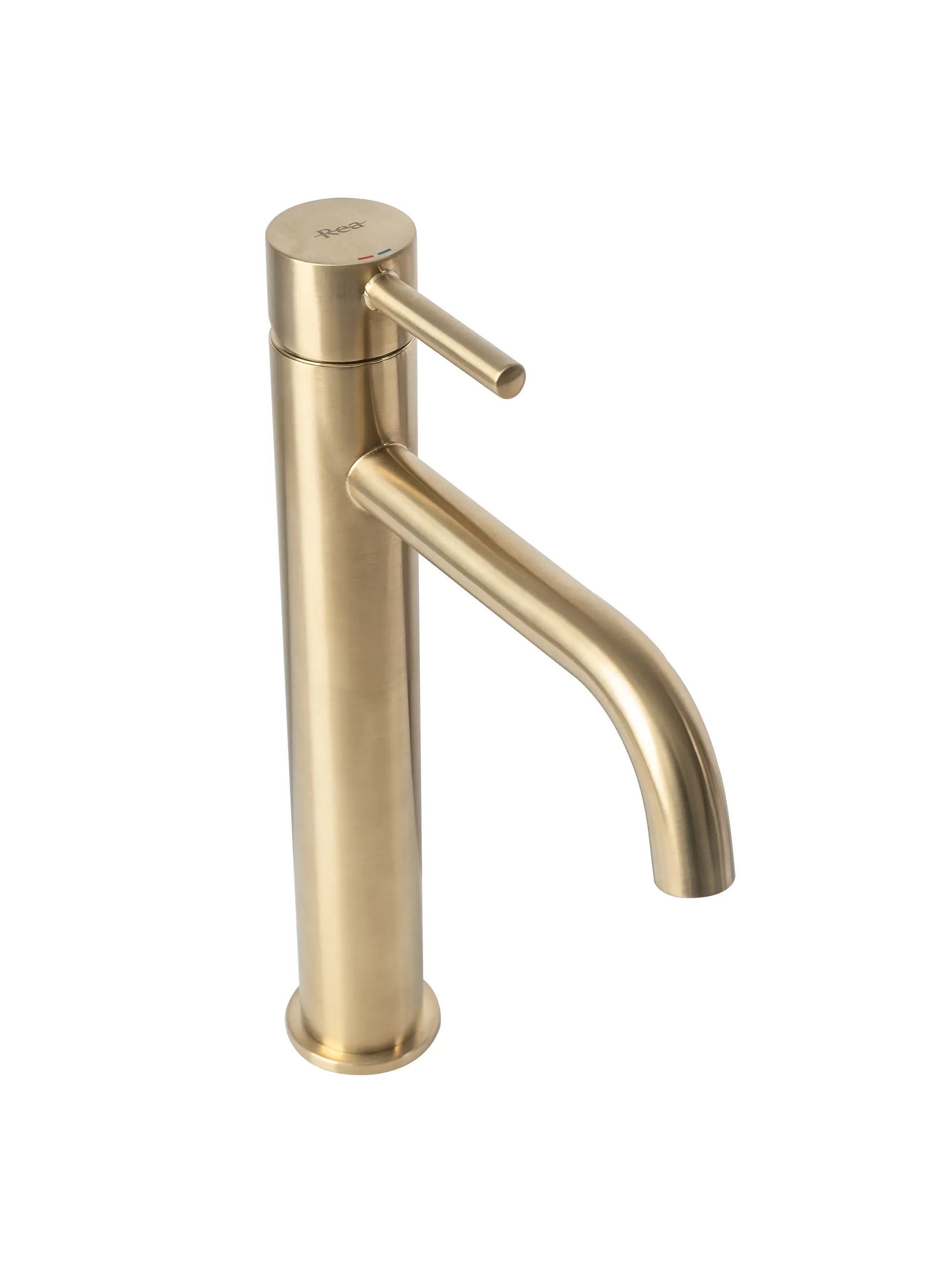 Opis produktu Bateria umywalkowa wysoka Lungo Rea złoto szczotkowane