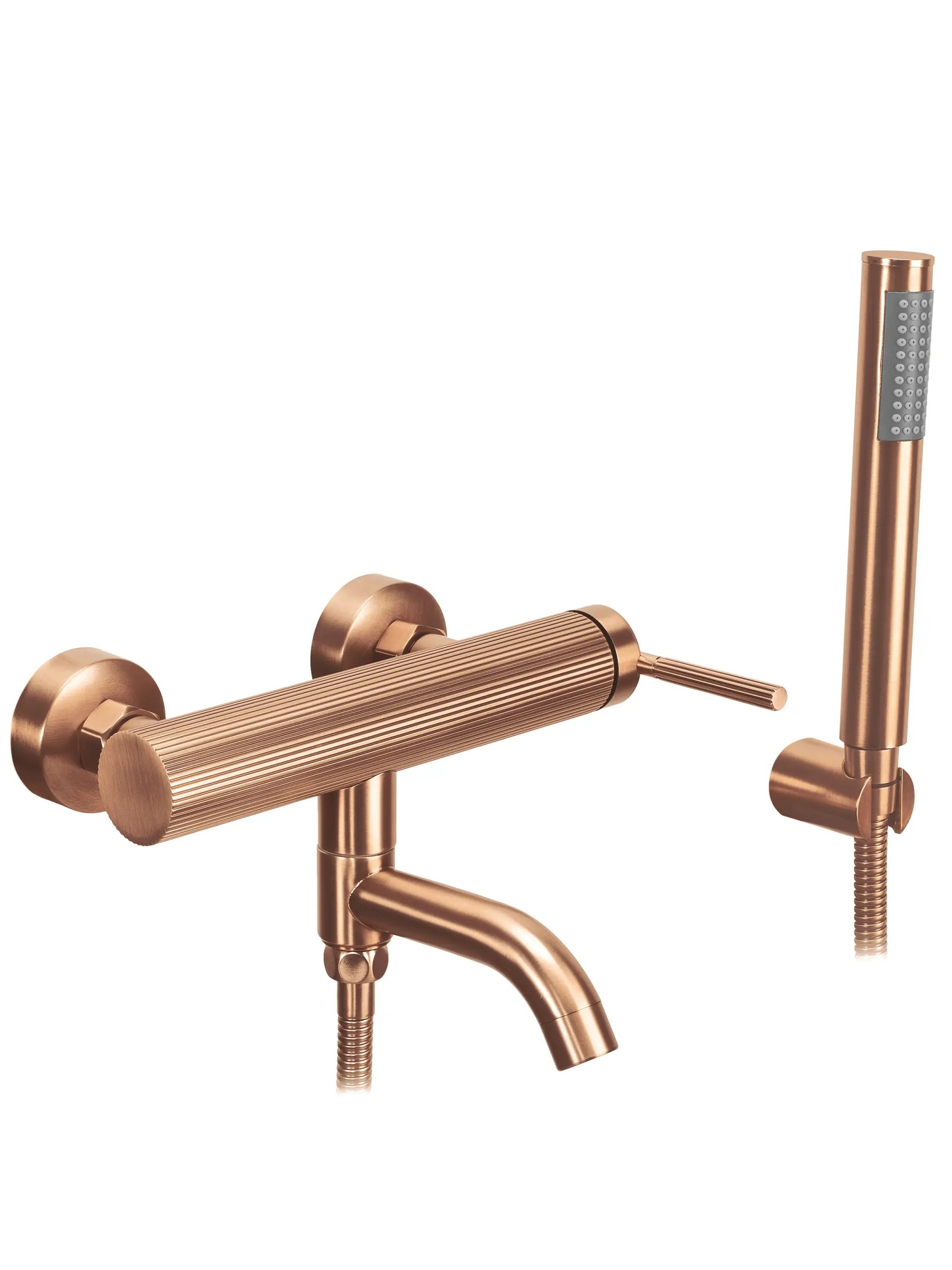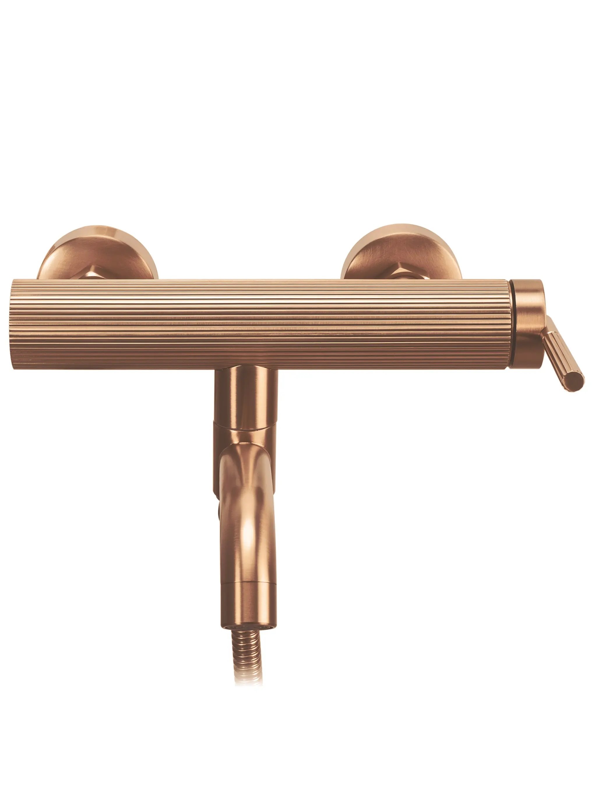 Bateria wannowa Rea Argon Miedź Szczotkowana to eleganckie połączenie nowoczesnego wzornictwa, funkcjonalności i najwyższej jakości wykonania. Jej smukła, cylindryczna forma z ryflowanym wykończeniem nadaje wnętrzu łazienki wyjątkowego charakteru, a ciepły odcień szczotkowanej miedzi wprowadza atmosferę luksusu i stylu.