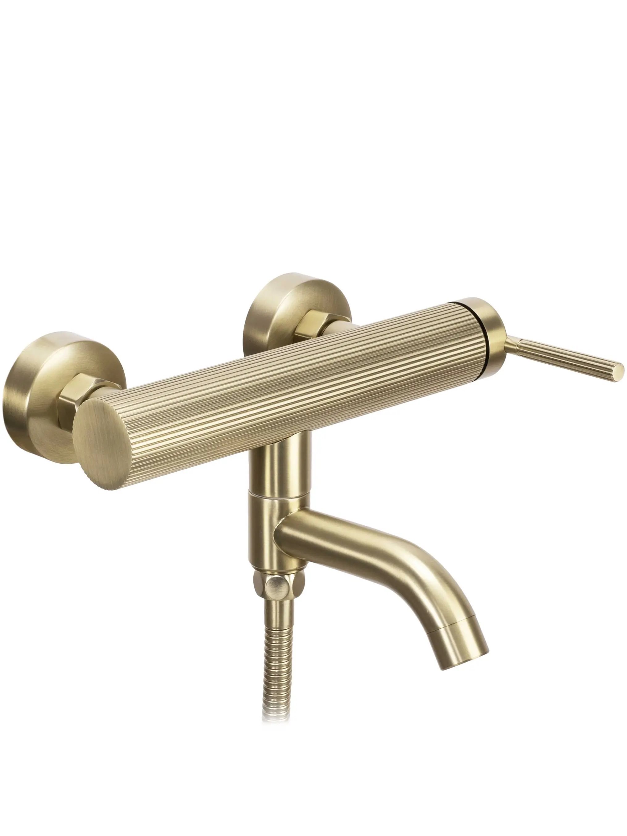 Bateria wannowa Rea z ruchomą, składaną wylewką Złoty Mat to połączenie nowoczesnego designu, funkcjonalności i wyjątkowej elegancji. Jej oryginalny, ryflowany korpus przyciąga wzrok, nadając wnętrzu luksusowego charakteru, a jednocześnie doskonale komponuje się z łazienkami w stylu modern classic, glamour czy art déco.