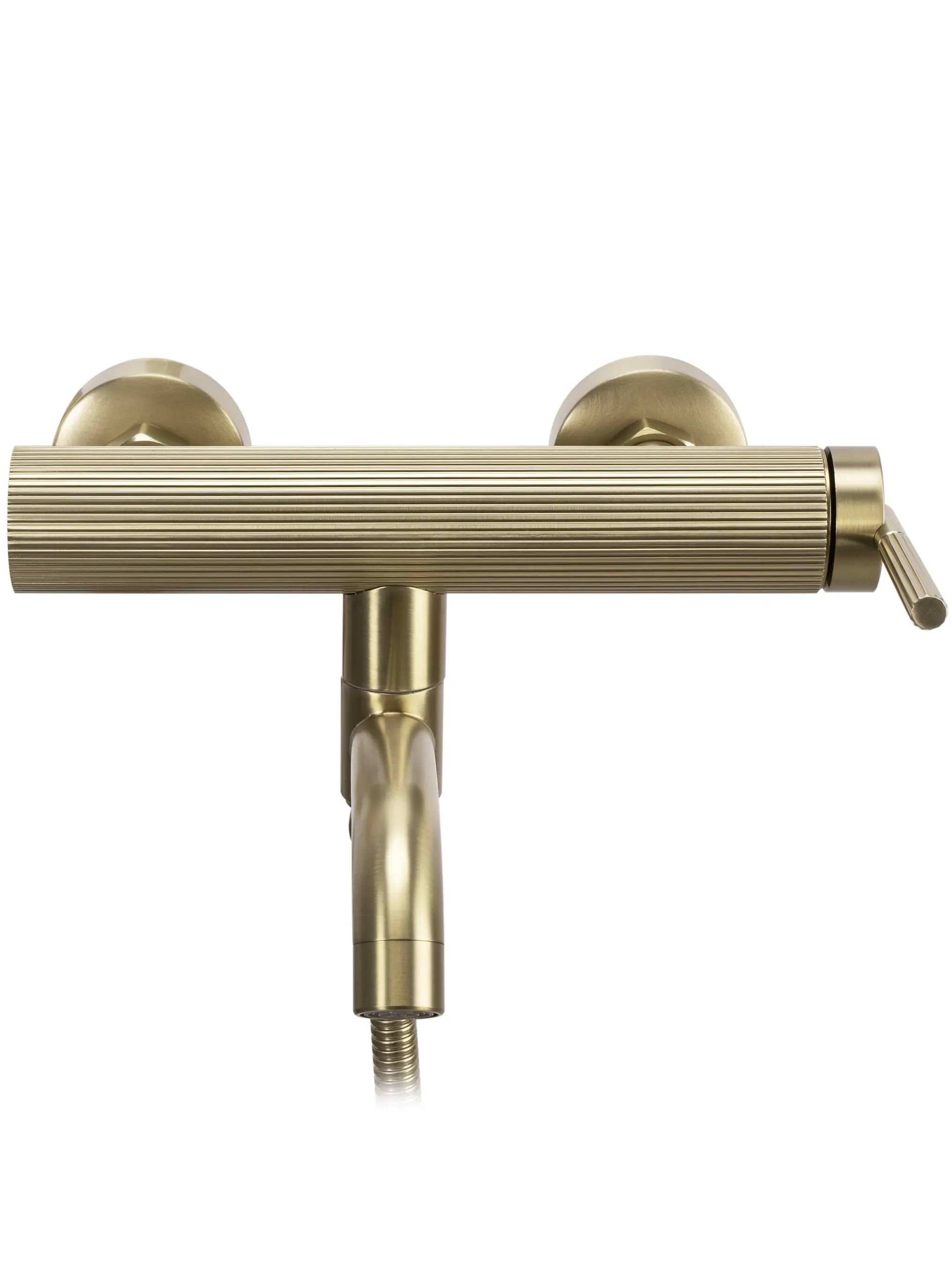 Złota szczotkowana powłoka, ryflowane detale i minimalistyczna forma sprawiają, że bateria Rea jest nie tylko elementem użytkowym, ale także dekoracyjnym akcentem, który dodaje wnętrzu klasy i wyjątkowego stylu.