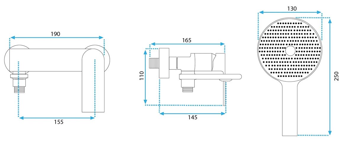 - rozstaw przyłączy: 150 mm