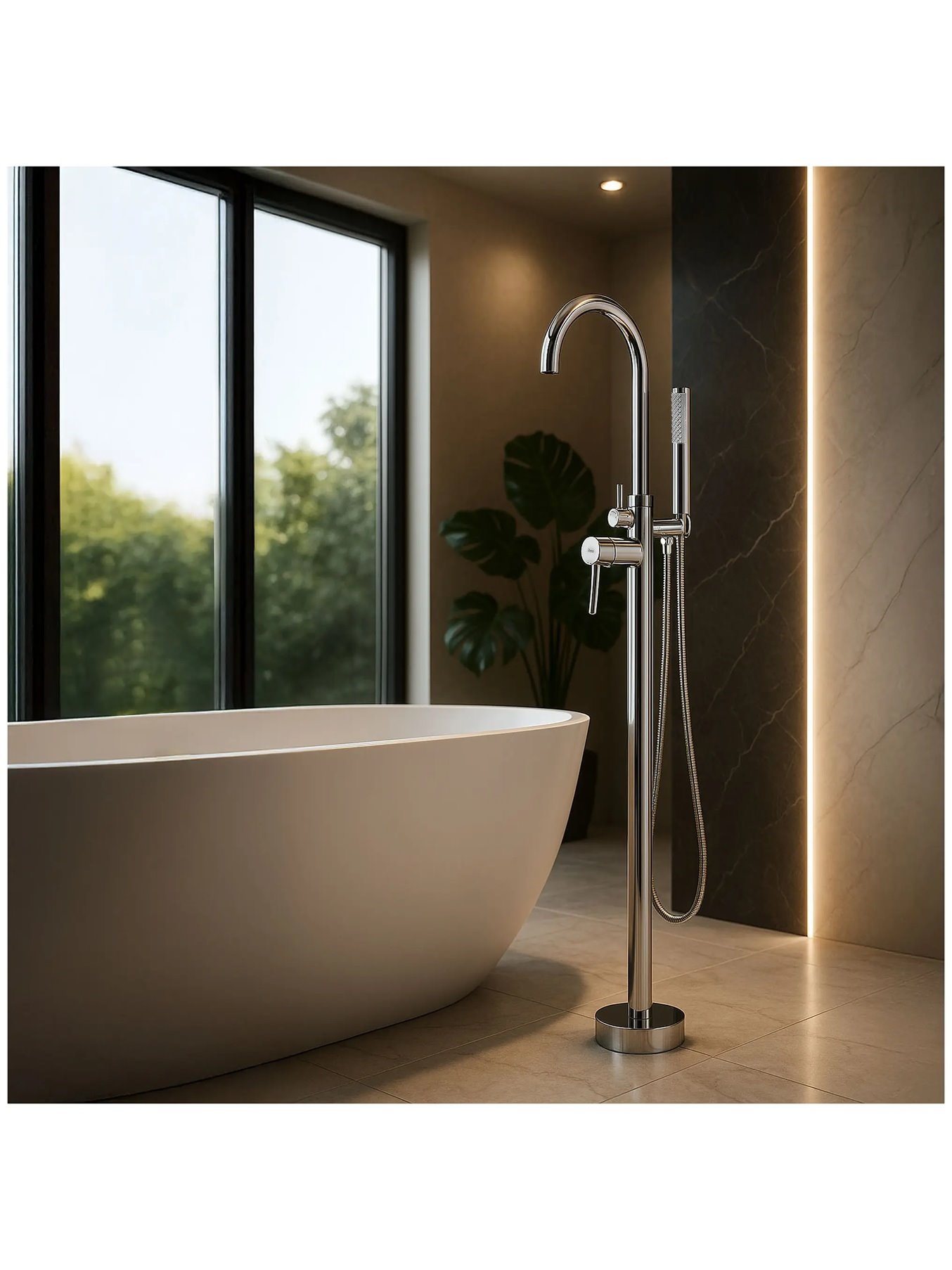 Nowoczesna bateria wannowa wolnostojąca Rea Lungo w kolorze chrom połysk to połączenie elegancji, funkcjonalności i najwyższej jakości wykonania. Jej minimalistyczny design doskonale komponuje się z wannami wolnostojącymi, tworząc stylową i harmonijną przestrzeń w każdej łazience.Korpus wykonany z trwałego mosiądzu i metalu został pokryty odporną powłoką w technologii electroplating, która nadaje powierzchni wyjątkowy połysk oraz zapewnia odporność na zarysowania, ścieranie i działanie wilgoci. Dzięki temu bateria zachowuje nienaganny wygląd i lśniący kolor przez długie lata użytkowania.