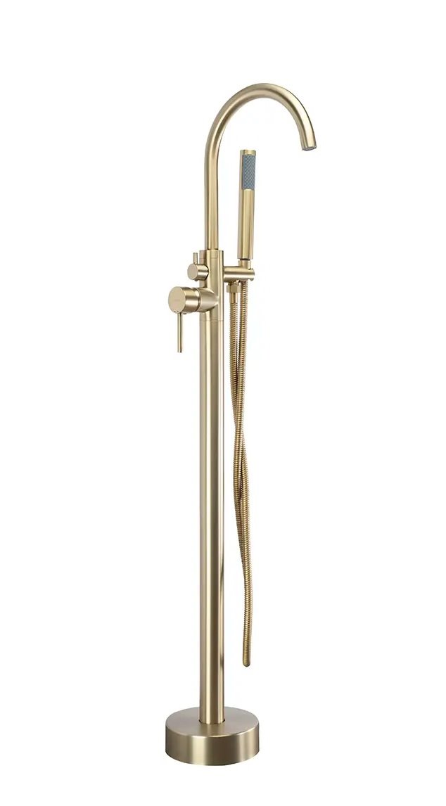 Opis produktu Bateria wannowa podłogowa Lungo Rea złota szczotkowana