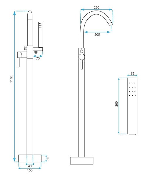 Bateria wannowa stojąca Rea wyróżnia się systemem anti-calc, który zapobiega osadzaniu się kamienia, a dysze można bardzo łatwo wyczyścić. W komplecie znajdują się: słuchawka, rozety, wężyk – 150 cm, mocowanie i uszczelki.