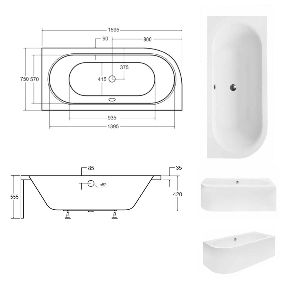 Opis produktu Biała ryflowana wanna asymetryczna akrylowa z obudową Avita Besco 160 cm Prawa