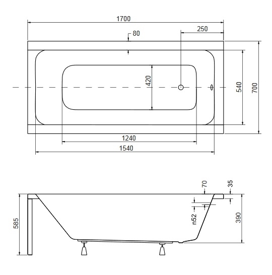 Opis produktu Biała ryflowana wanna prostokątna z obudową 170 cm Modern Besco