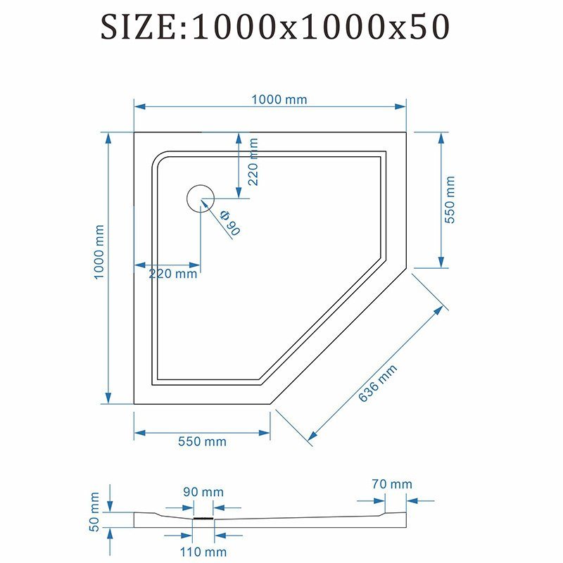 Opis produktu Biały brodzik prysznicowy pięciokątny struktura kamienia 100x100 RAVE-WH-100 wysokość 5 cm
