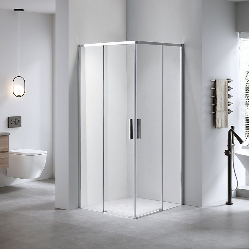 Opis produktu Chromowana kabina prysznicowa kwadratowa Super Slim Nova 90x90 drzwi rozsuwane