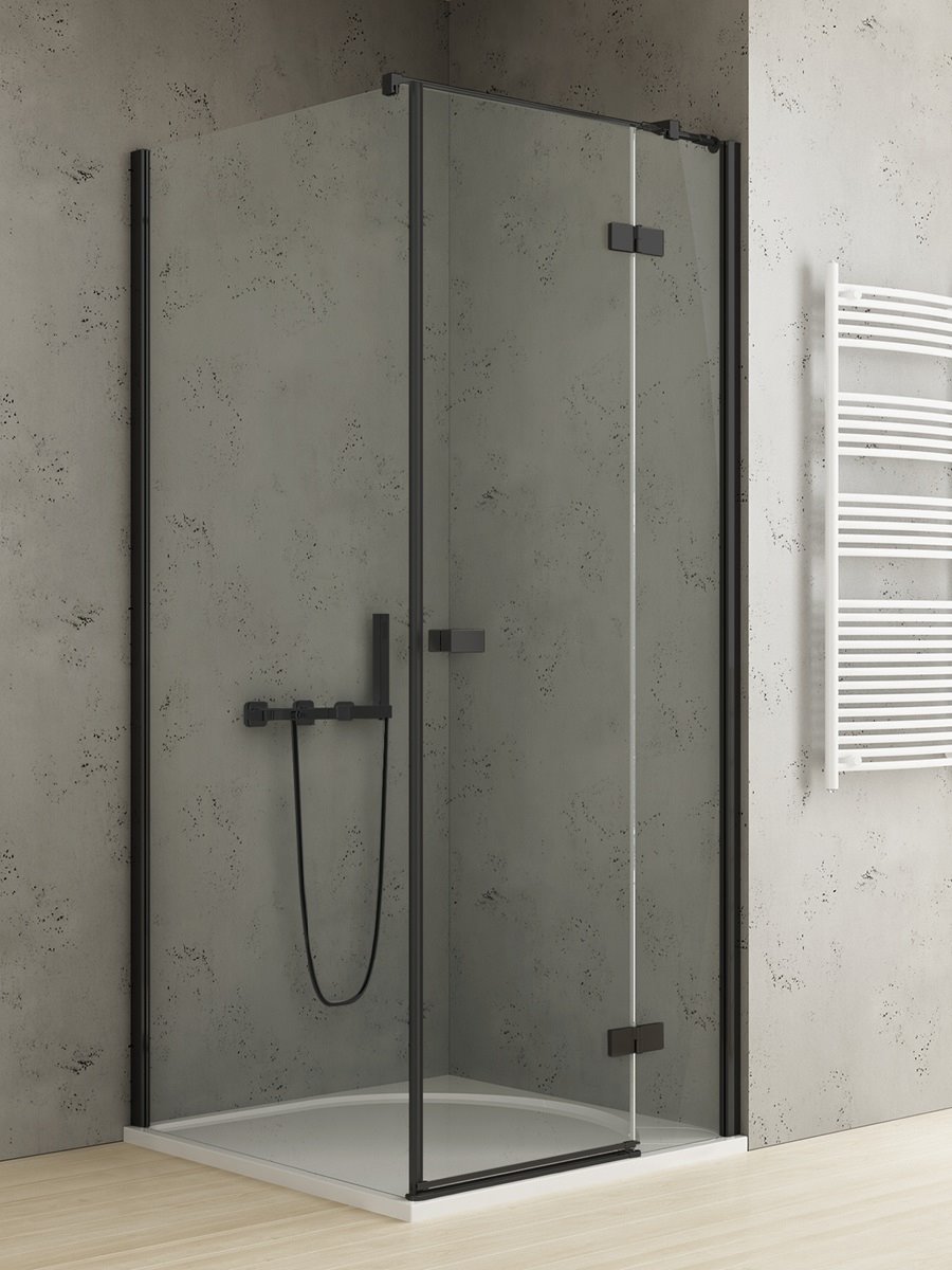 Model Reflexa Black posiada eleganckie, czarne detale o matowym wykończeniu. Kabina prysznicowa wyposażona w bezpieczne, hartowane szyby o grubości 6mm, z powłoką ochronną Active Shield 2.0. W dolnej części drzwi znajduje się rynienka, odprowadzająca wodę z szyby do wewnątrz strefy prysznicowej. Kabina może być instalowana z brodzikiem lub bez brodzika. Kolekcja objęta 7-letnim okresem gwarancji. Istnieje możliwość zamówienia produktu także w opcji na wymiar.- wymiary 100 x 100 x 200 cm (drzwi x ścianka x wysokość)