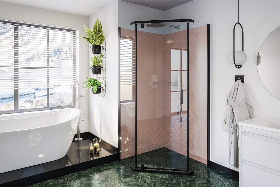 Opis produktu Czarna kabina prysznicowa, pięciokątna 80x80 cm Stylio BK501PTK+