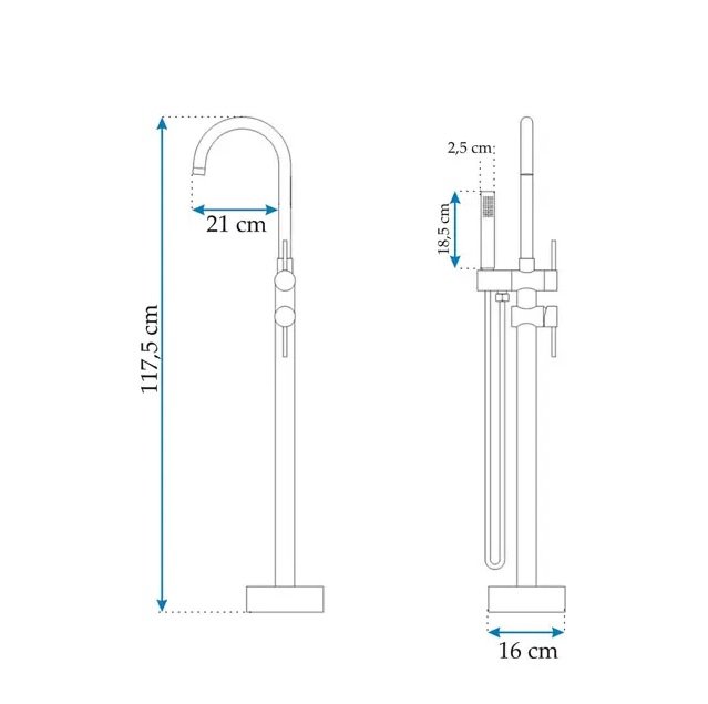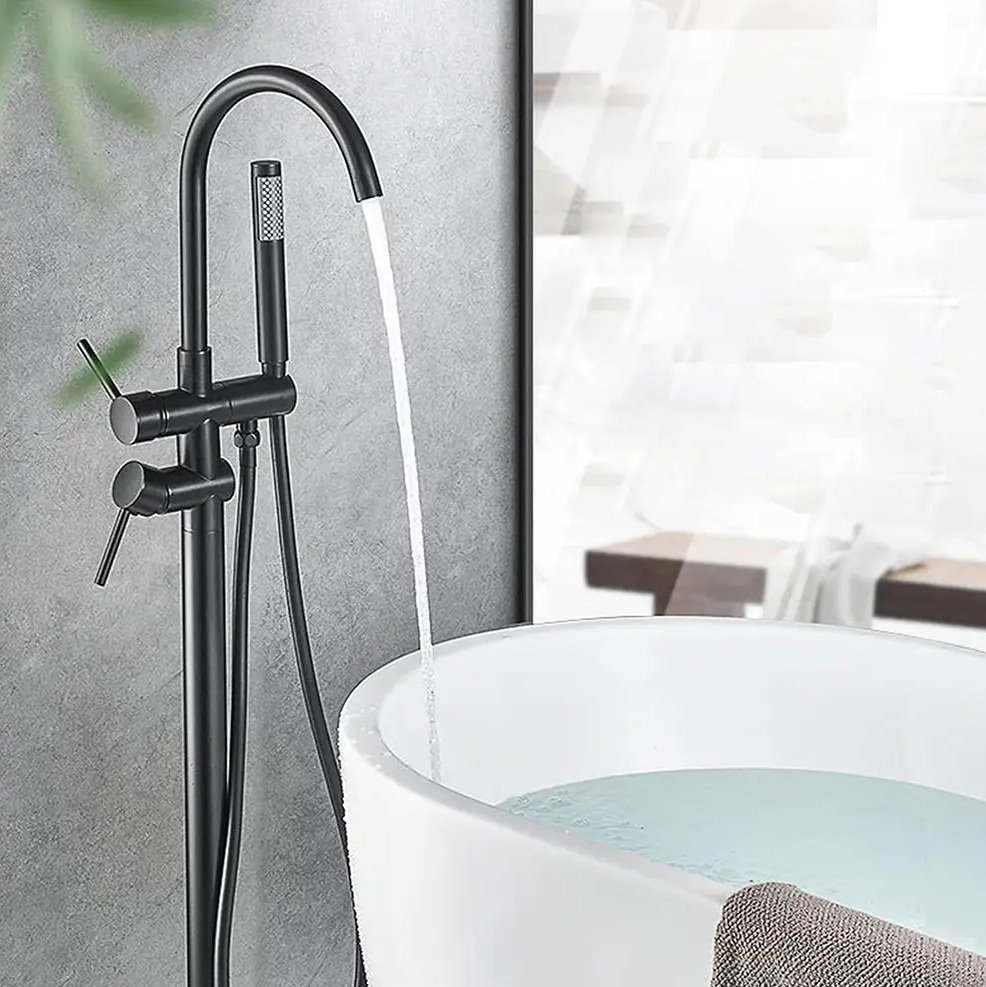 Opis produktu Czarna matowa podłogowa bateria wannowa Lungo Black Rea