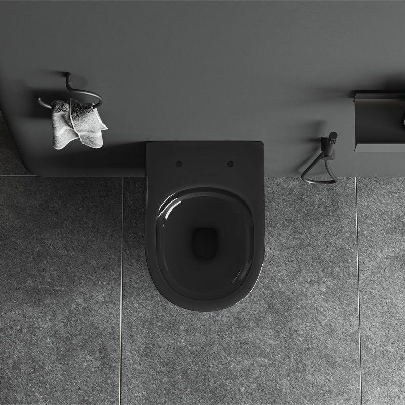 Opis produktu Czarna miska wc wisząca Rimless Tornado SKAL-BL-RIM-03 Hydrosan