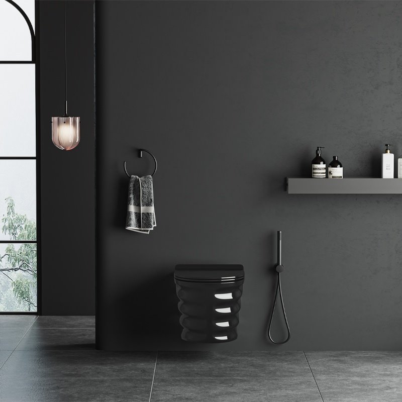 Podwieszana konstrukcja miski WC SKAL pozwala optycznie powiększyć przestrzeń łazienki, nadając jej lekkości i nowoczesnego charakteru. Wyjątkowe wykończenie w czarnym macie ze subtelnym akcentem nadaje całości luksusowego, designerskiego wyglądu, który doskonale komponuje się z armaturą w kolorach złota, czerni oraz szczotkowanych metali.