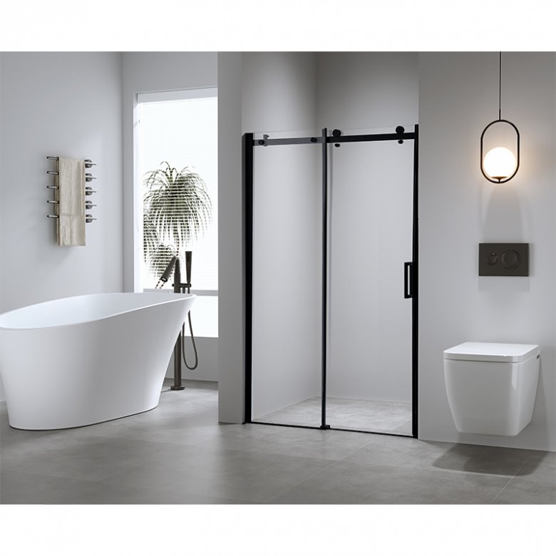 Opis produktu Czarne drzwi prysznicowe do wnęki 125-130 cm rozsuwane SH03EB szkło 8 mm