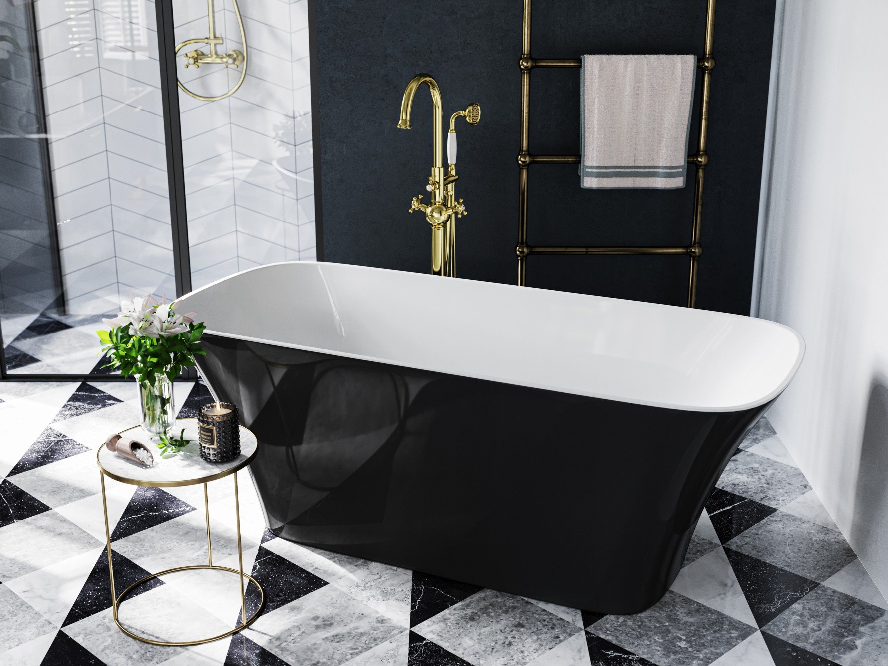 Opis produktu Czarno-biała matowa wanna wolnostojąca z konglomeratu + klik-klak chrom 160 cm Assos Matt B&W Besco WMMC-160A