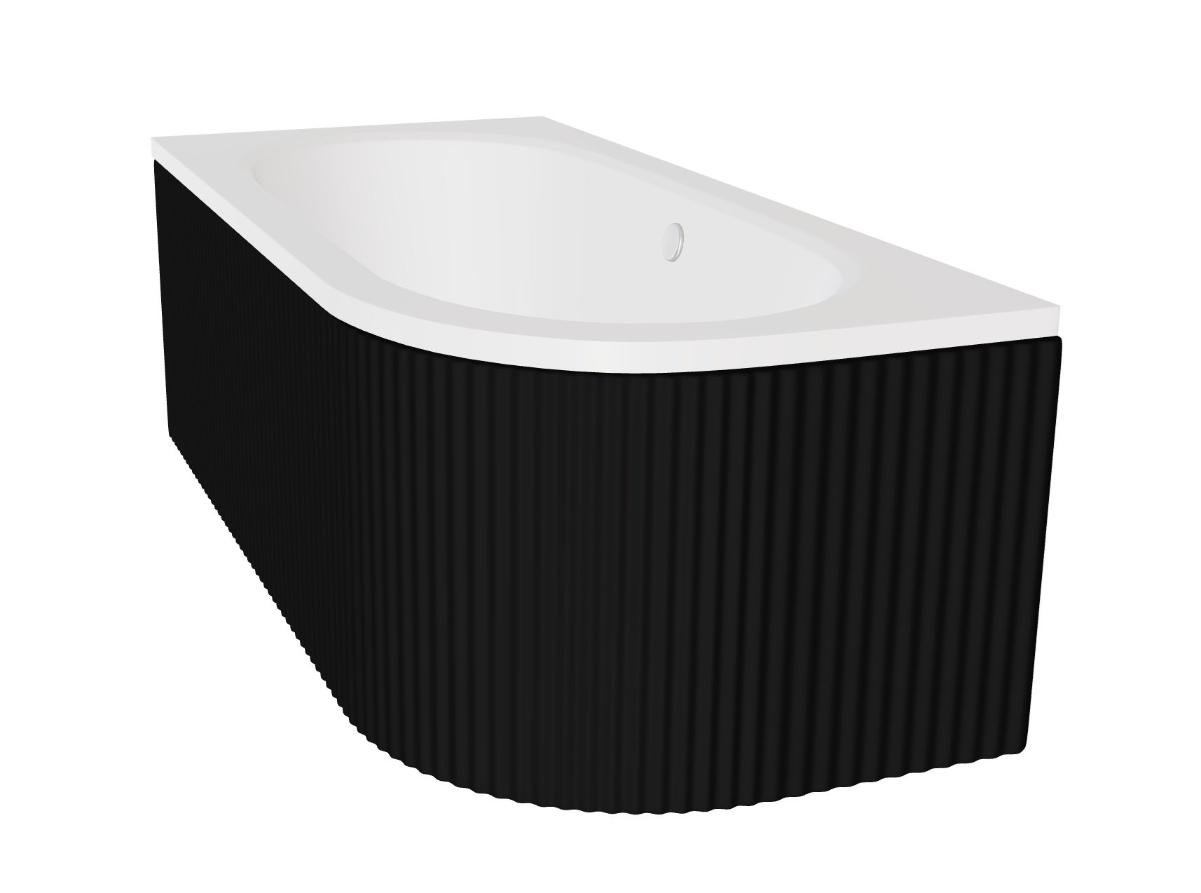 Opis produktu Czarno-biała ryflowana wanna asymetryczna akrylowa z obudową Avita Besco 150 cm Lewa