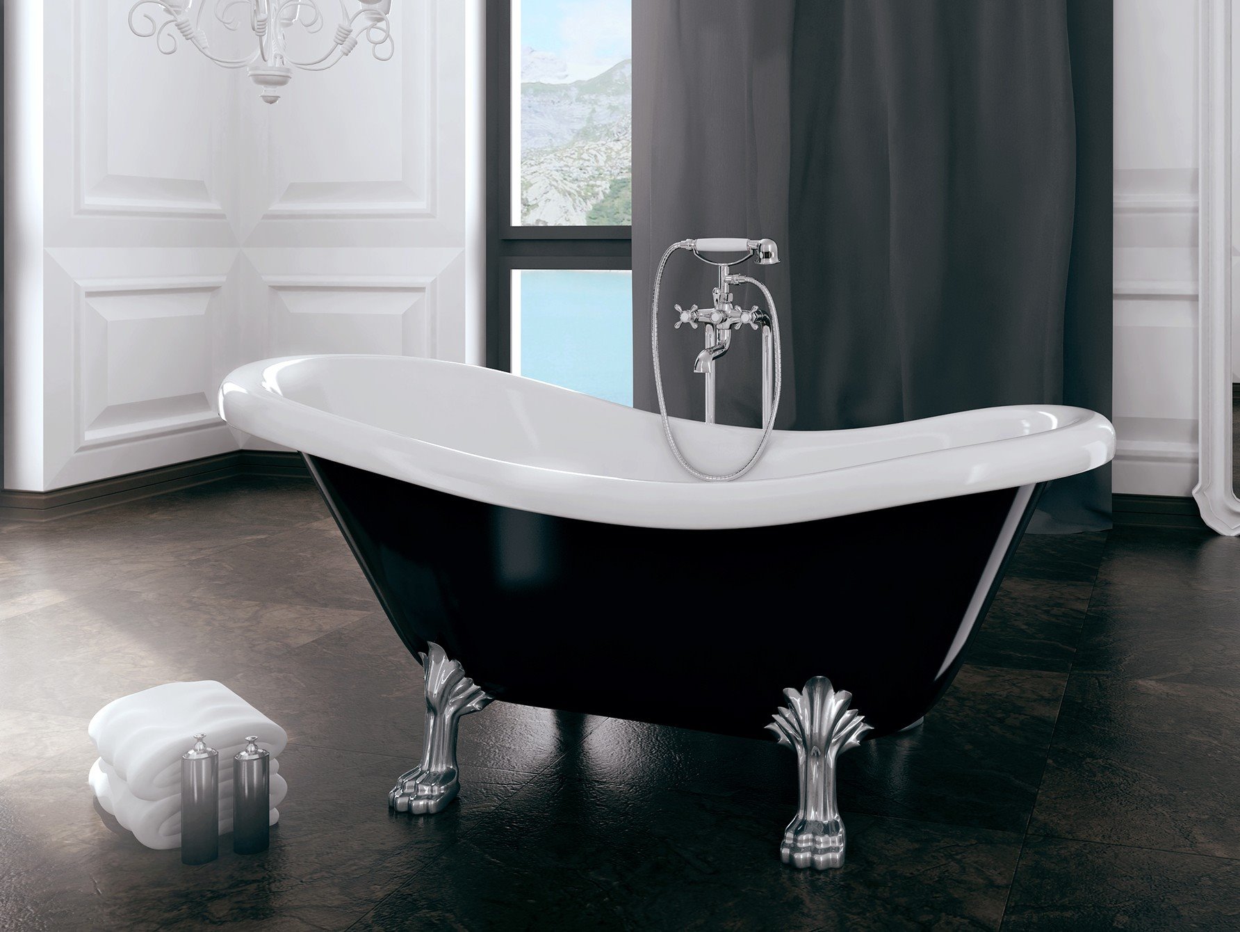 Opis produktu Czarno-biała wanna wolnostojąca 170 nogi chrom Otylia B&W Besco WKO-170-BWC