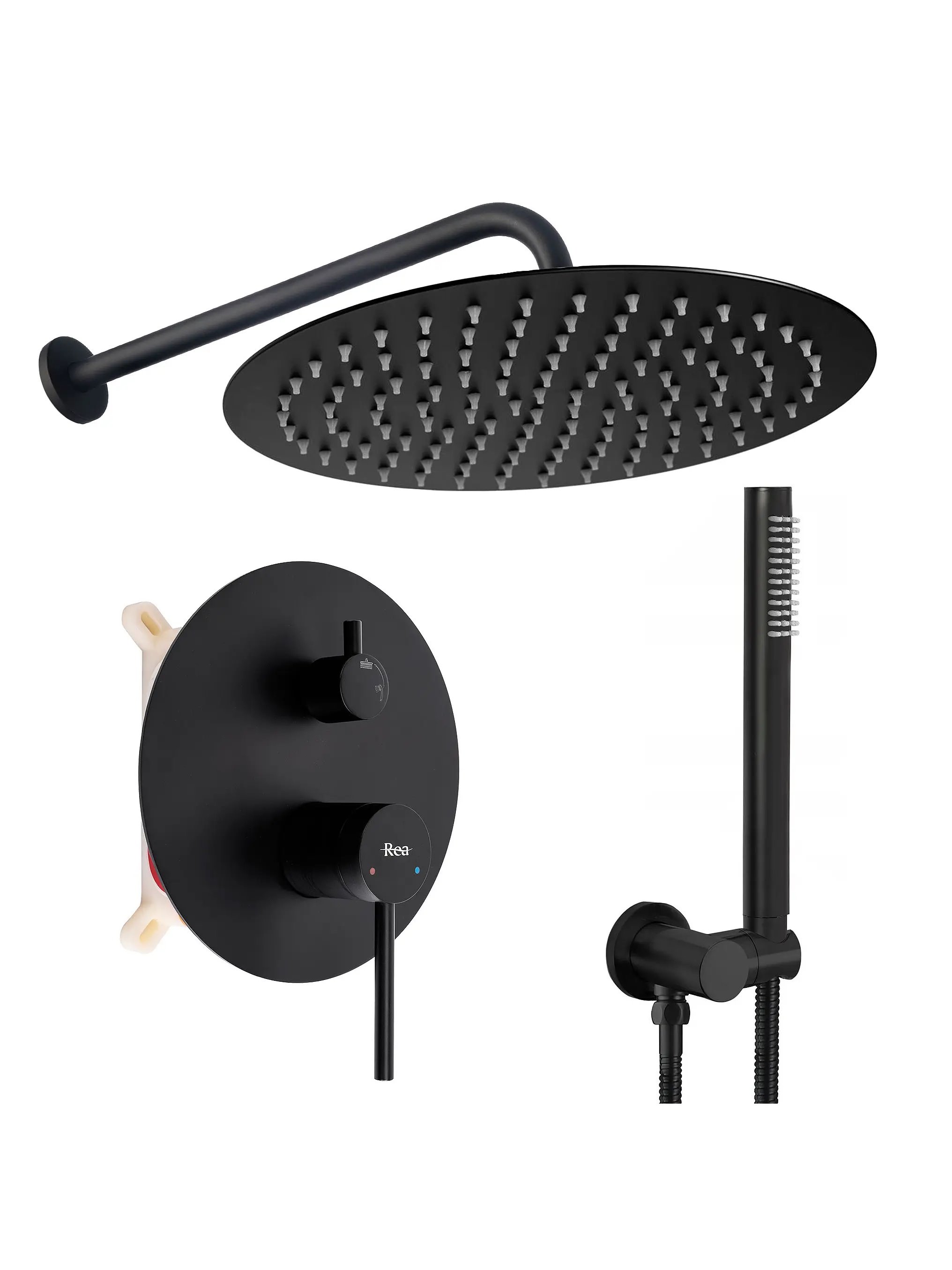 Opis produktu Czarny zestaw prysznicowy podtynkowy box Foss Clif Rea
