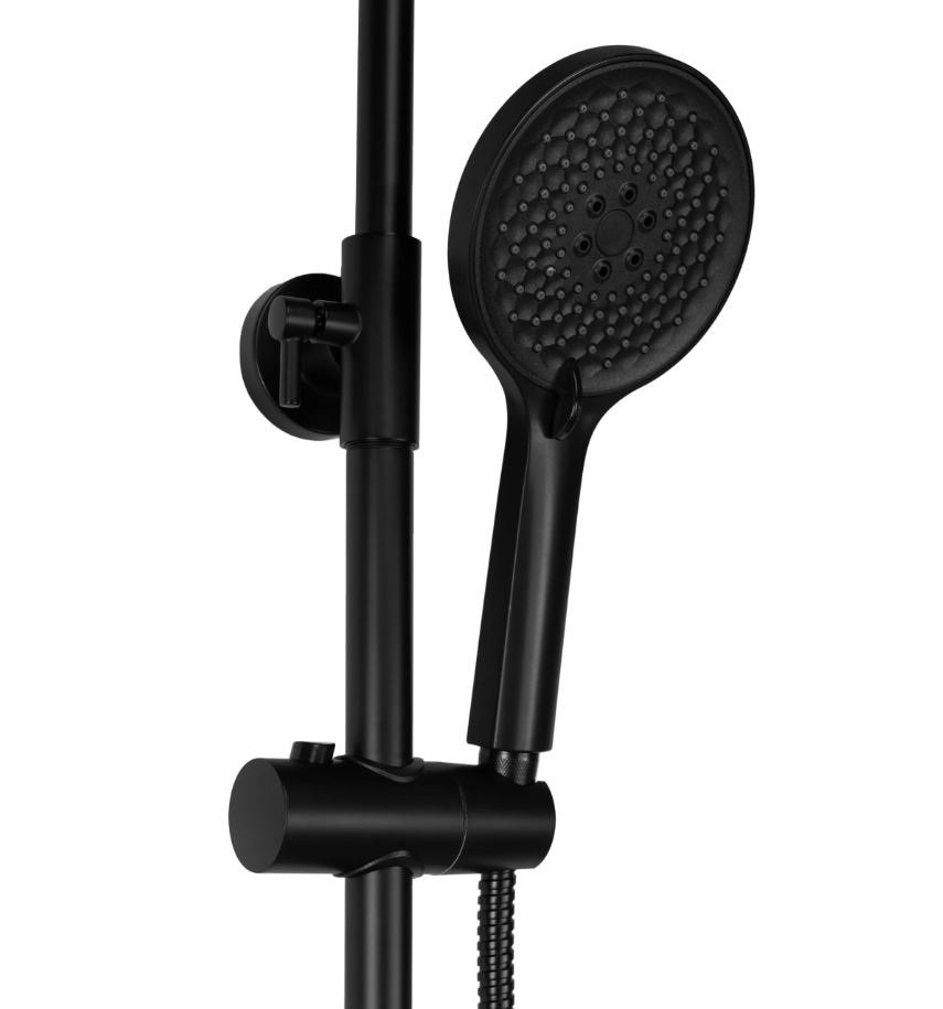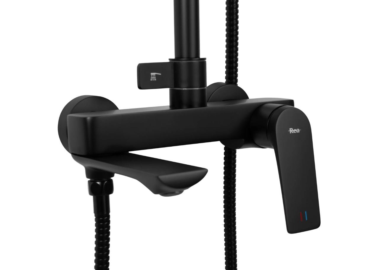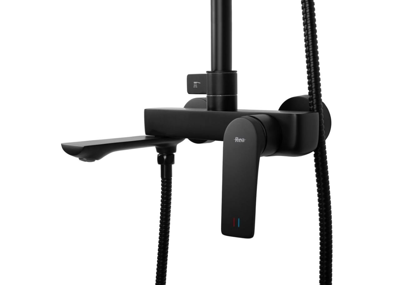 Opis produktu Czarny zestaw prysznicowy z wylewką Avalon Rea