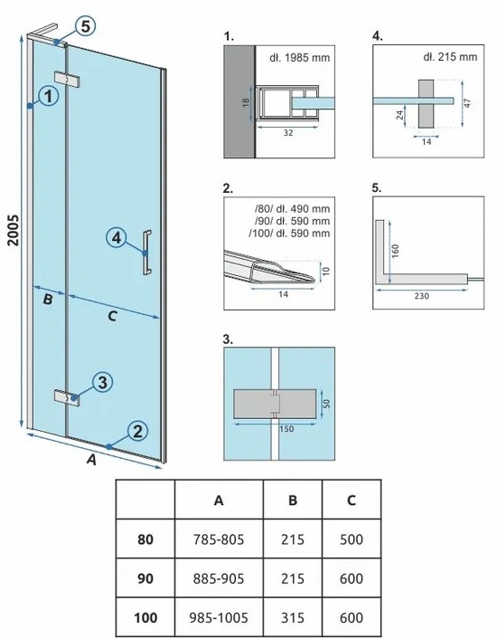 | Uniwersalność montażu | Drzwi przeznaczone do montażu na brodzik lub płytki |