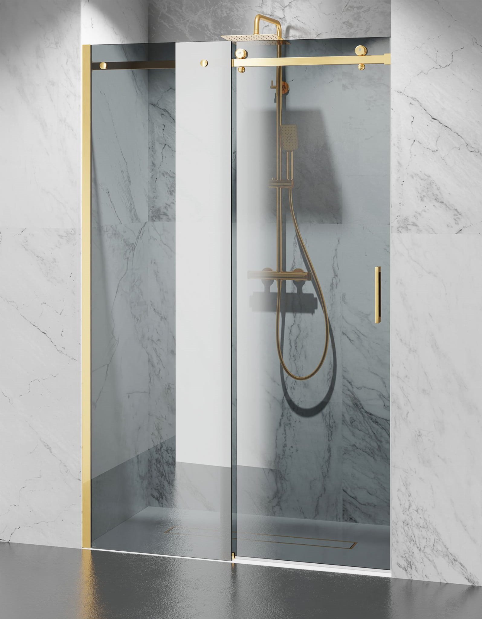 Szkło grafitowe zostało pokryte nowoczesną powłoką hydrofobową, ograniczającą powstawanie kamienia i osadów z mydła. Dzięki temu czyszczenie drzwi jest szybkie i bezproblemowe. Solidne profile w złotym macie są odporne na uszkodzenia i zachowują swój elegancki wygląd przez wiele lat.