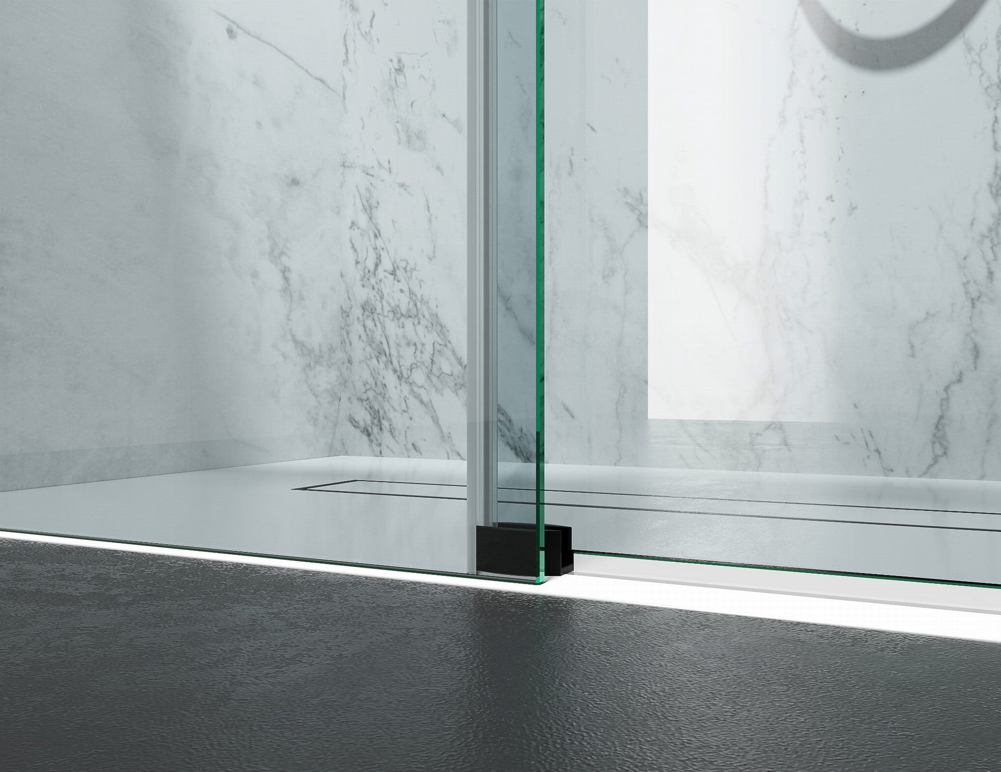 Drzwi można skompletować z dedykowanym brodzikiem, tworząc pełny zestaw prysznicowy. To rozwiązanie, które zwiększa funkcjonalność i ułatwia aranżację łazienki, zachowując przy tym nowoczesny, spójny styl.