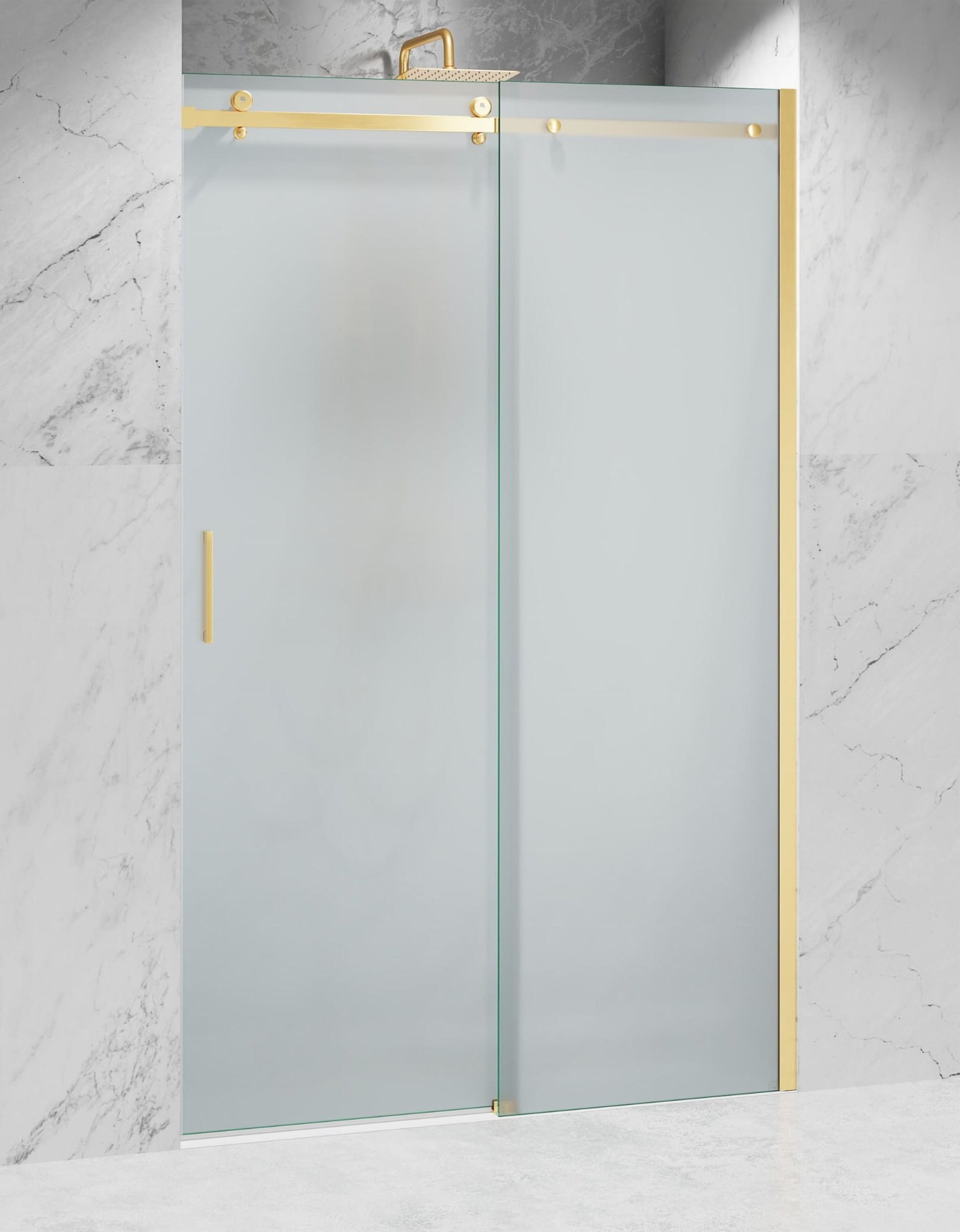 Drzwi prysznicowe przesuwne Swiss-Liniger Premium – szkło mleczne i profile w złotym macie