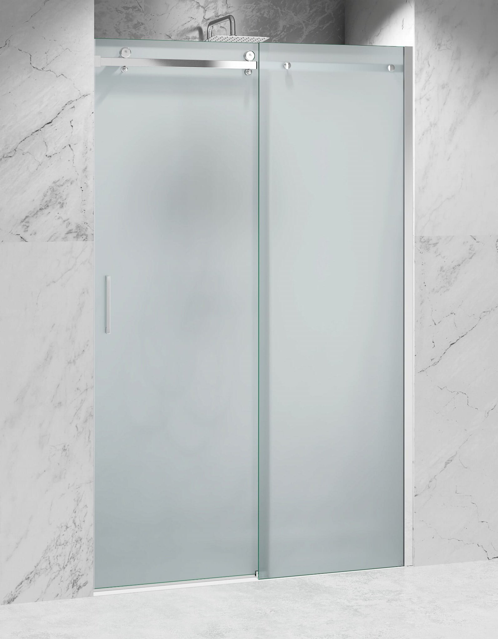 Opis produktu Drzwi prysznicowe rozsuwane prawe/lewe do wnęki 122-131 cm szkło 8mm mleczne profile chrom Swiss Liniger