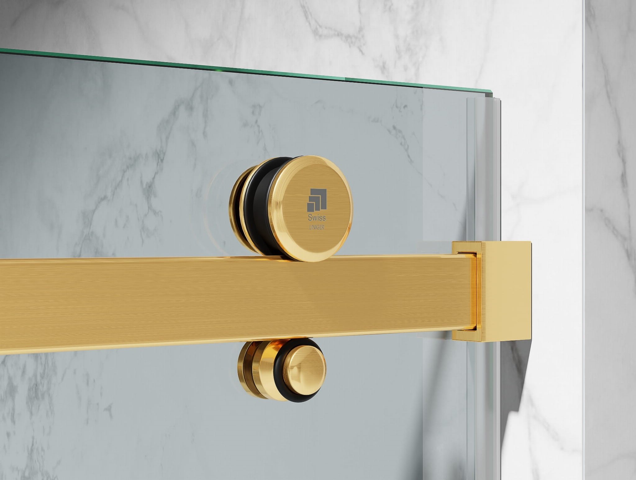 Drzwi prysznicowe przesuwne Swiss-Liniger Premium to propozycja dla osób ceniących nowoczesny design połączony z elegancją. Hartowane szkło o grubości 8 mm zapewnia wysoki poziom bezpieczeństwa i trwałości, a profile w luksusowym wykończeniu złoty mat dodają całości wyjątkowego, prestiżowego charakteru.