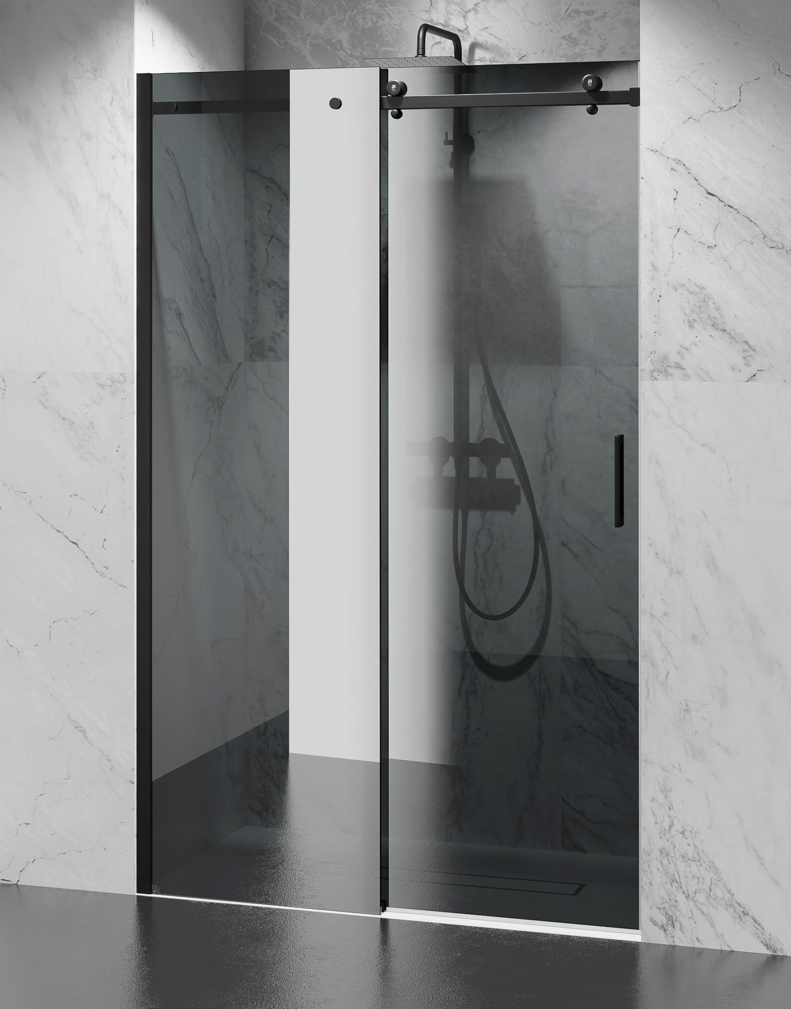 Drzwi prysznicowe przesuwne Swiss-Liniger Premium – szkło grafitowe i czarny mat