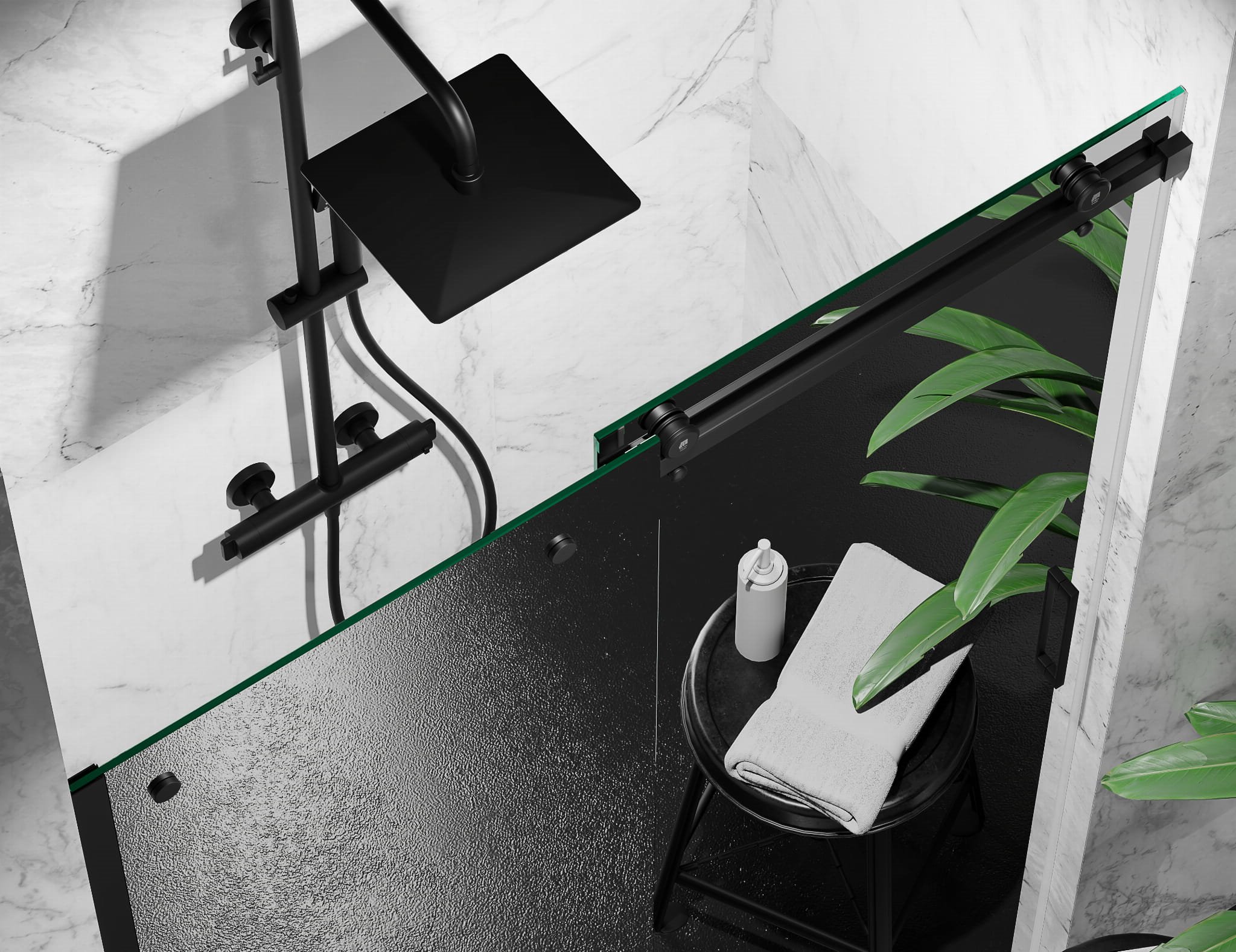 System przesuwny na podwójnych rolkach zapewnia lekkość i cichą pracę skrzydeł, a przesuwna konstrukcja nie wymaga dodatkowej przestrzeni. To rozwiązanie doskonałe zarówno do małych łazienek, jak i przestronnych wnętrz.