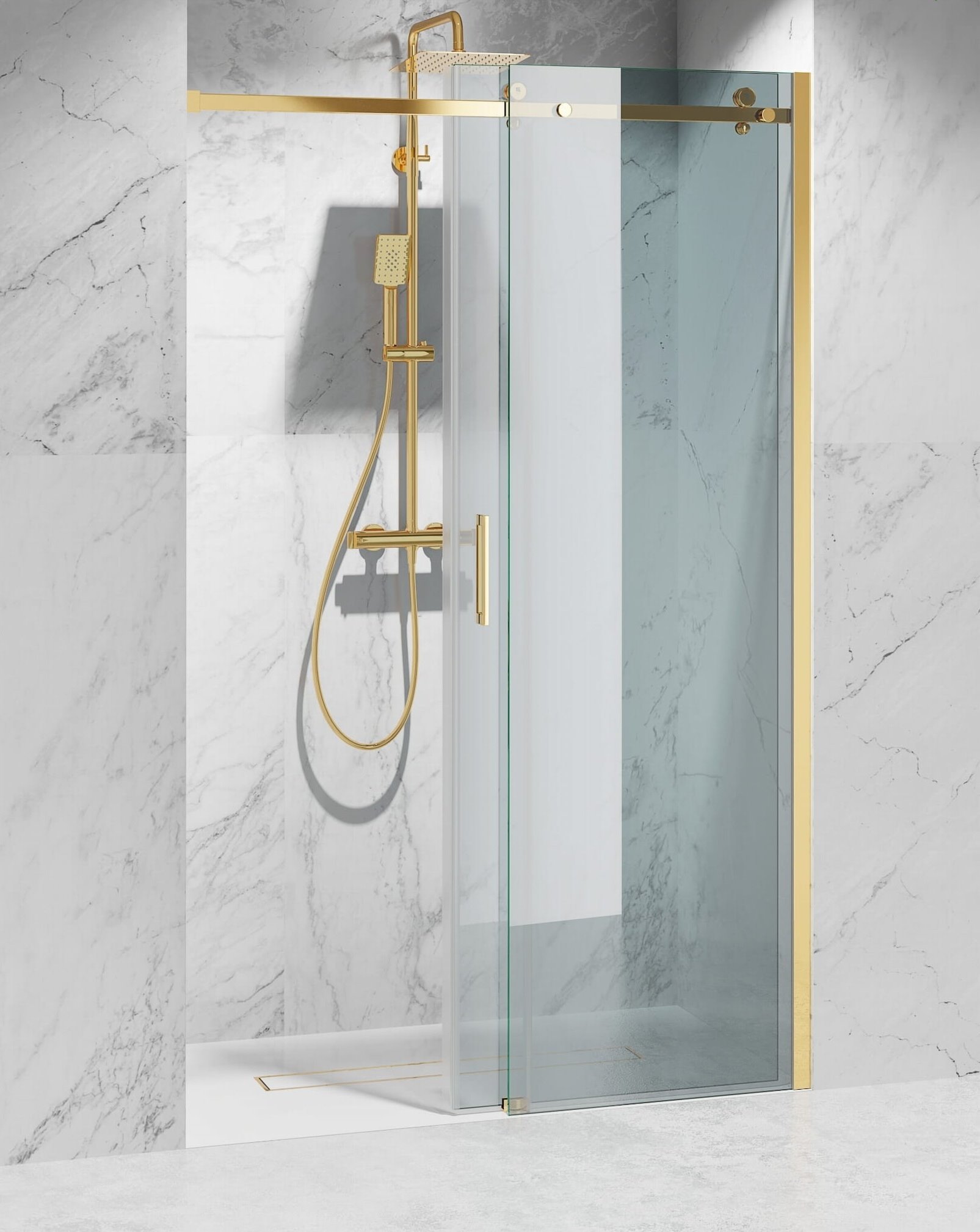 Drzwi prysznicowe przesuwne Swiss-Liniger Premium to propozycja dla osób ceniących nowoczesny design połączony z elegancją. Hartowane szkło o grubości 8 mm zapewnia wysoki poziom bezpieczeństwa i trwałości, a profile w luksusowym wykończeniu złoty mat dodają całości wyjątkowego, prestiżowego charakteru.