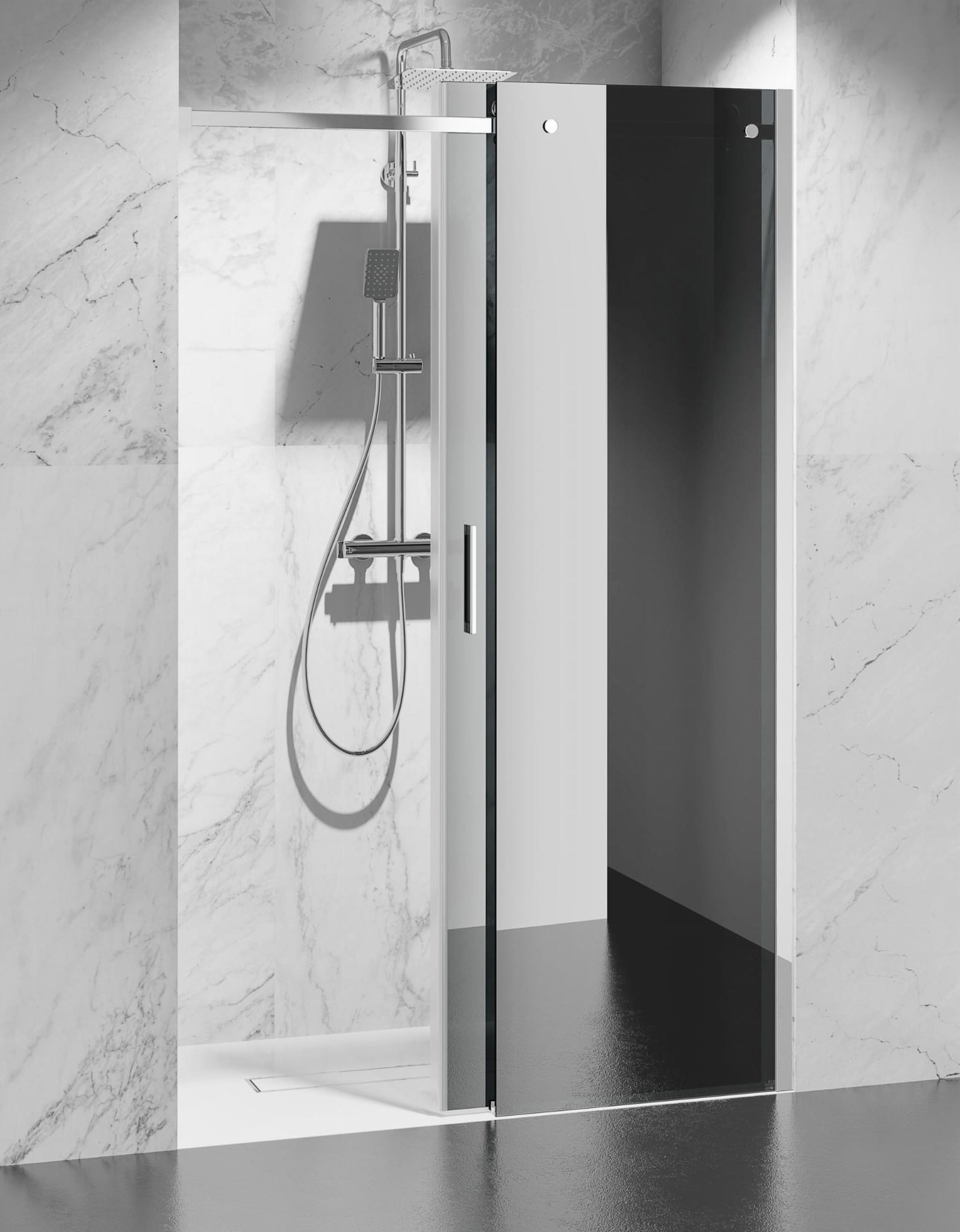 System przesuwny na łożyskowanych rolkach gwarantuje płynne i ciche otwieranie, a jednocześnie pozwala oszczędzić miejsce w łazience. Drzwi sprawdzą się zarówno w mniejszych wnętrzach, jak i w przestronnych aranżacjach.