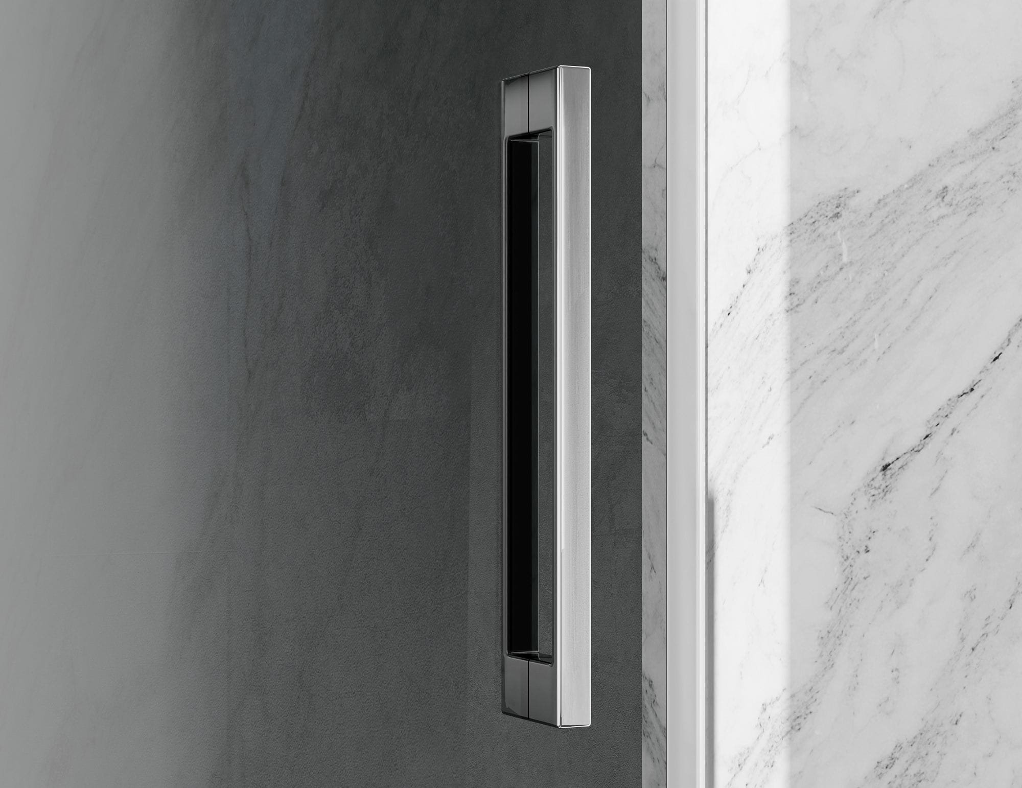 System przesuwny na łożyskowanych rolkach gwarantuje płynne i ciche otwieranie, a jednocześnie pozwala oszczędzić miejsce w łazience. Drzwi sprawdzą się zarówno w mniejszych wnętrzach, jak i w przestronnych aranżacjach.