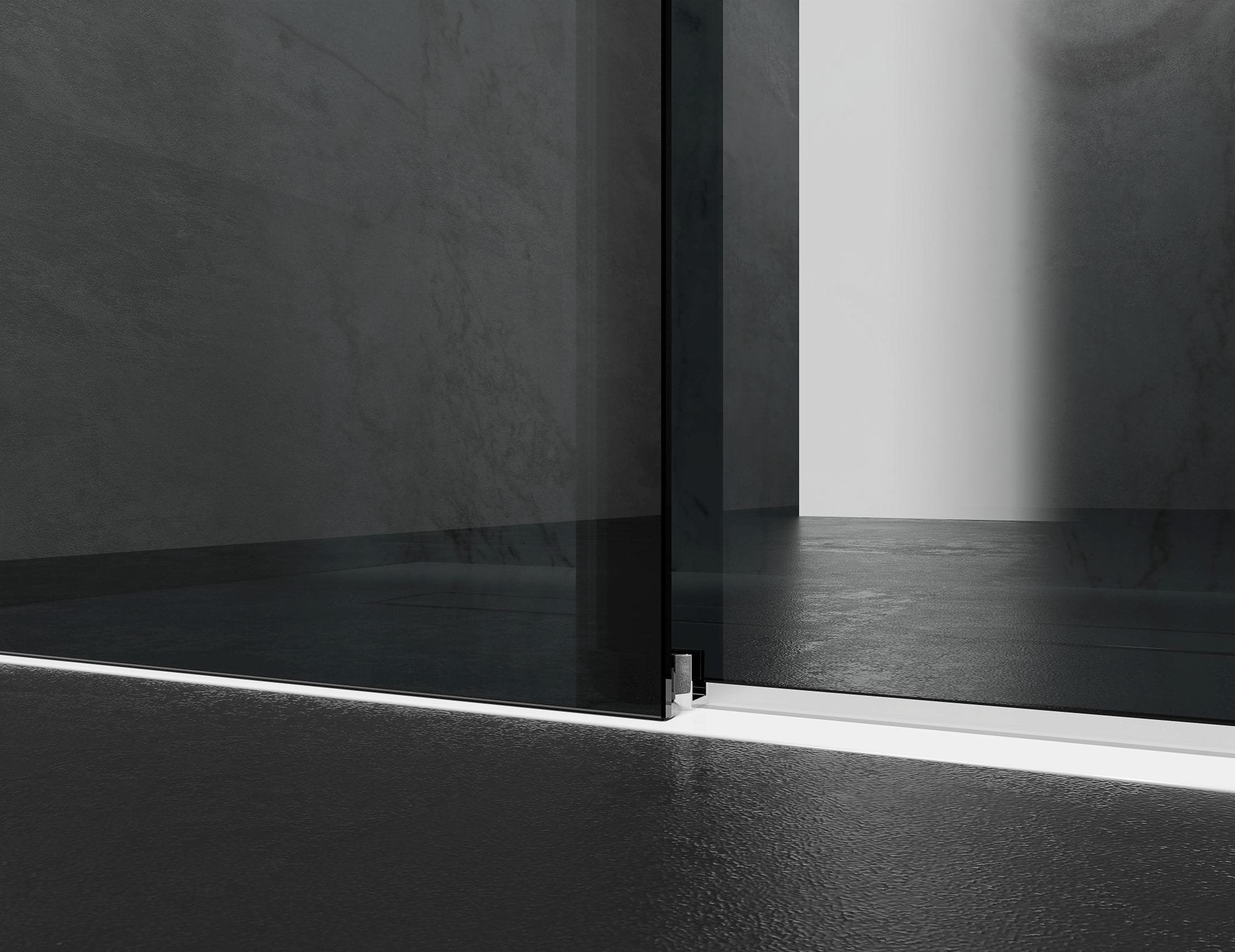 Drzwi Swiss-Liniger Premium można instalować na brodziku lub bezpośrednio na posadzce z odwodnieniem liniowym. Regulowane profile umożliwiają precyzyjne dopasowanie do wnęki, co ułatwia montaż i zapewnia stabilność konstrukcji.