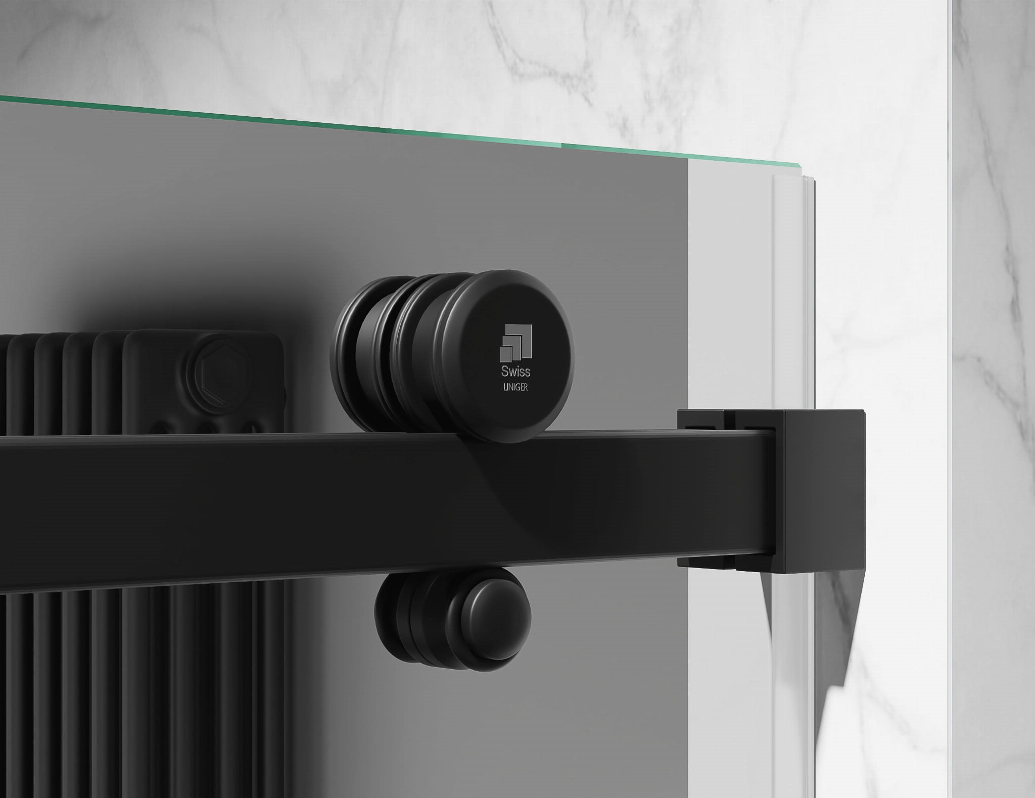 Drzwi prysznicowe przesuwne Swiss-Liniger Premium – szkło grafitowe i czarny mat