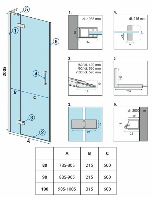 Cechy drzwi prysznicowych 80 cm Hugo Rea: