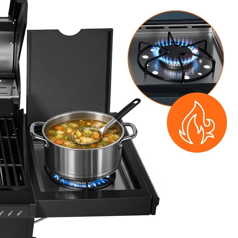 Stabilna temperatura, wygoda obsługi i dodatkowy palnik boczny pozwalają przygotować pełne posiłki w jednym miejscu – bez konieczności korzystania z kuchni.