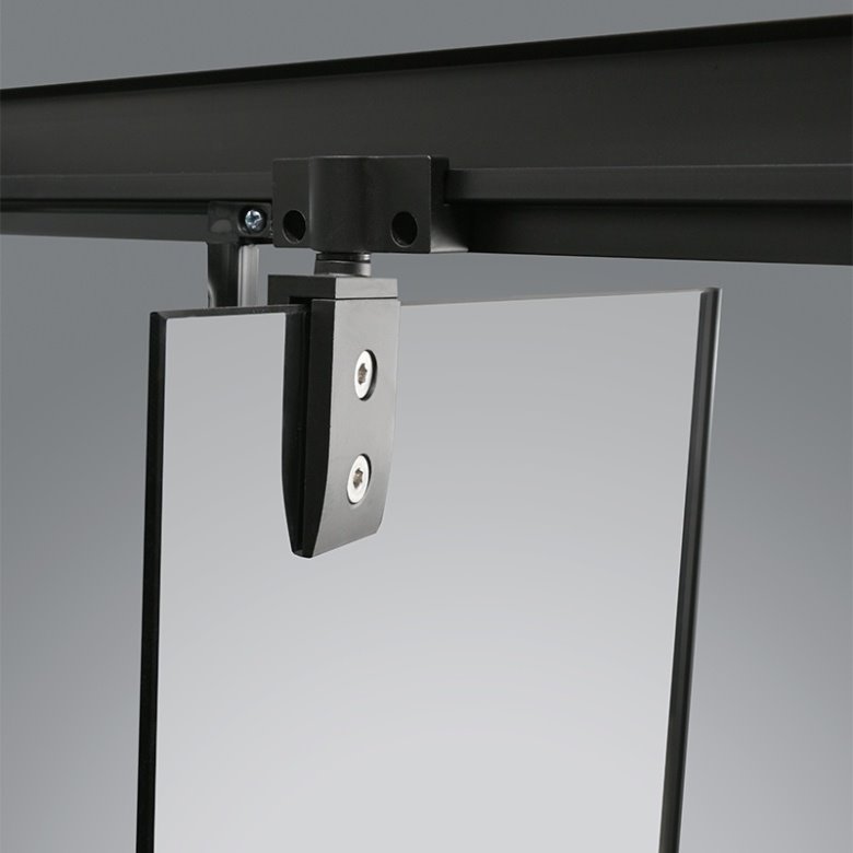 - TYLNE ŚCIANY ZE SZKŁA HARTOWANEGO CZARNEGO (CZARNE LUSTRO, NIC NIE WIDAĆ CO JEST ZA ŚCIANKAMI)