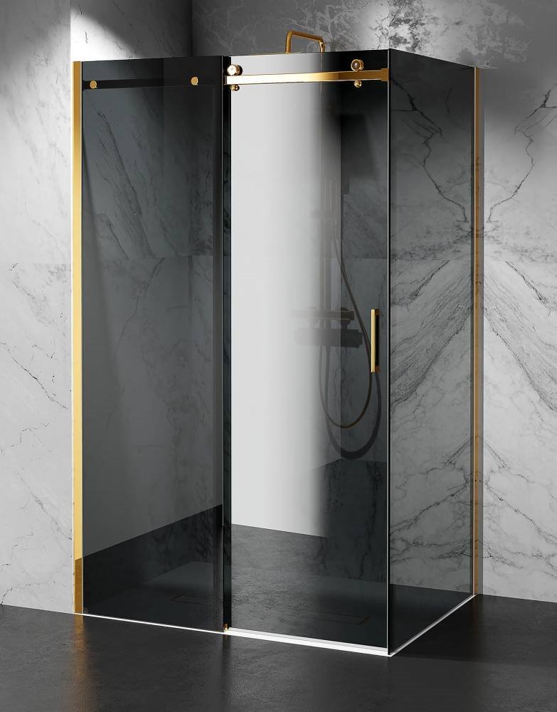 Kabina prysznicowa przesuwna Swiss-Liniger Premium – szkło grafitowe przydymione i profile złoty mat (szczotkowany)