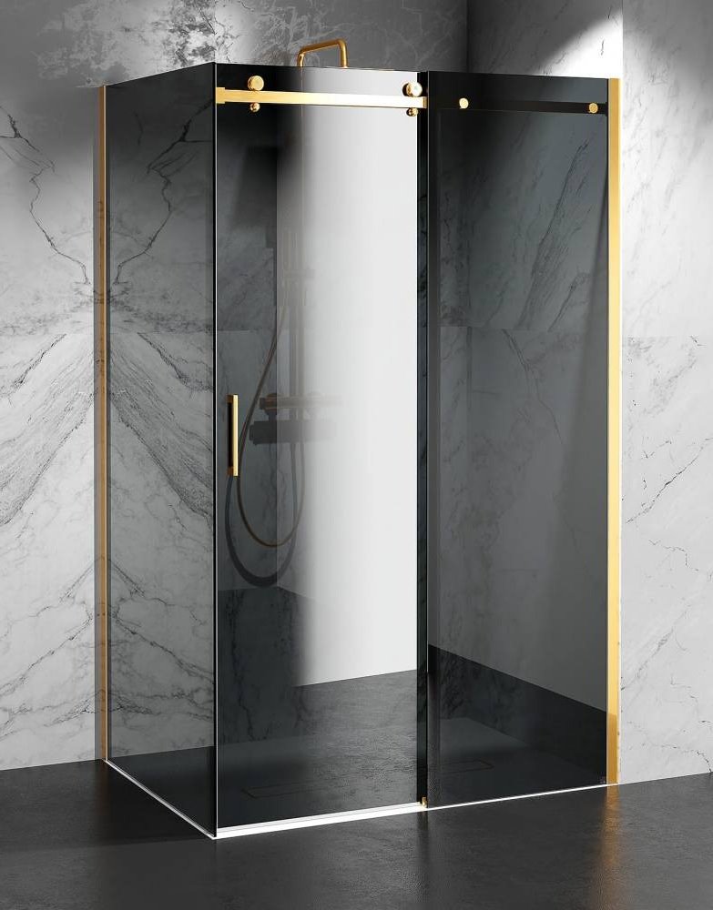 Kabina prysznicowa przesuwna Swiss-Liniger Premium – szkło grafitowe i profile złoty połysk