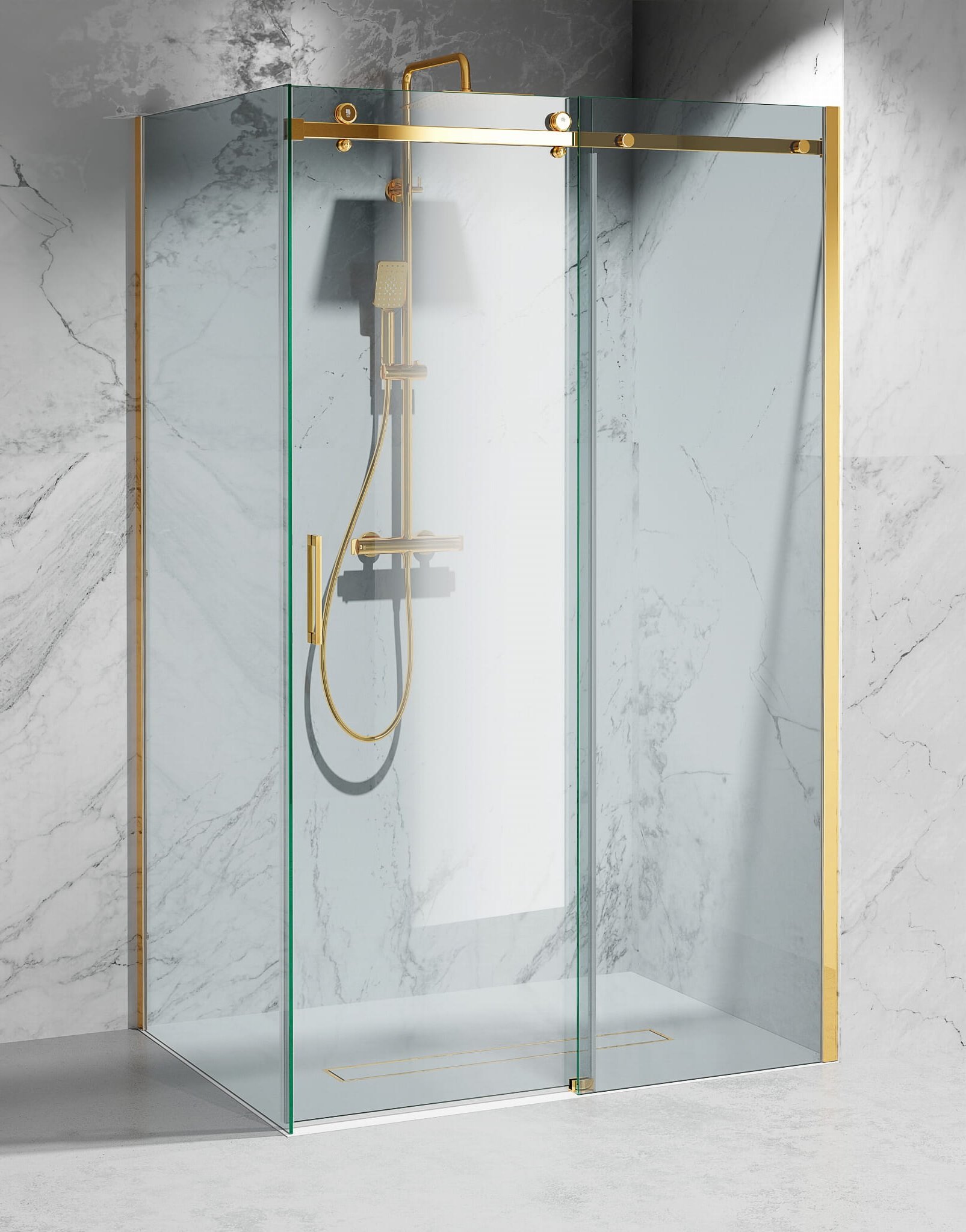 Kabina prysznicowa przesuwna Swiss-Liniger Premium – szkło przeźroczyste i profile złoty mat (szczotkowany)