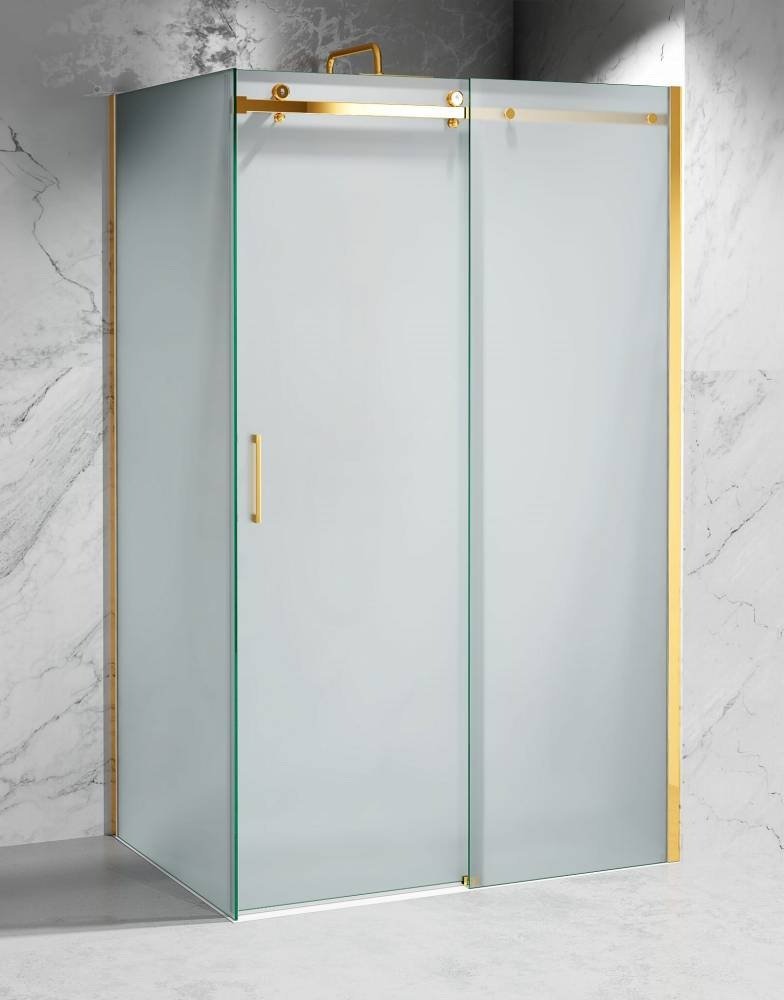 Opis produktu Kabina prysznicowa narożna 140x90 cm szkło 8mm mleczne profile złoty mat Swiss Liniger
