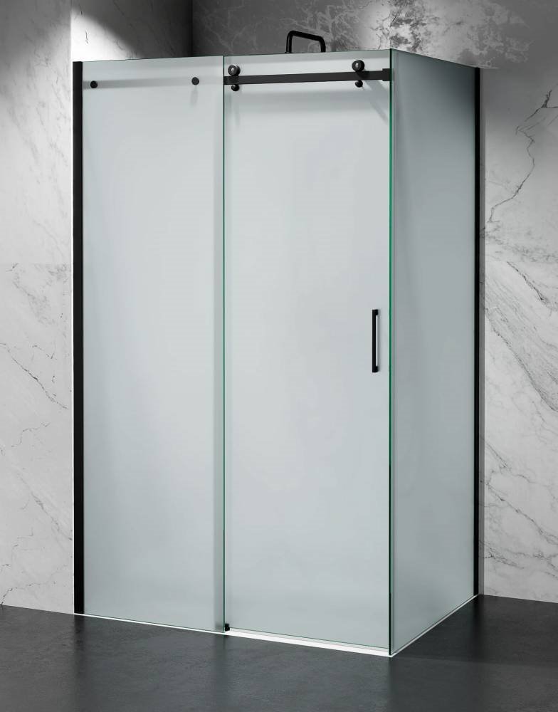 Opis produktu Kabina prysznicowa narożna 90x100 cm szkło 8mm mleczne profile czarny mat Swiss Liniger