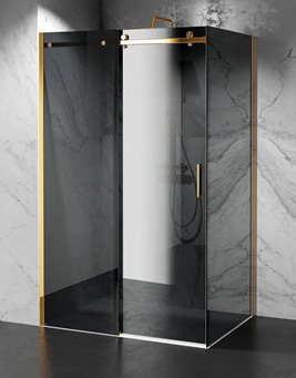 Kabina prysznicowa przesuwna Swiss-Liniger Premium – szkło grafitowe przydymione i profile złoty mat (szczotkowany)