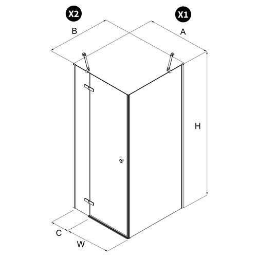 - kabina posiada drzwi po prawej stronie natomiast ściankę stałą po lewej