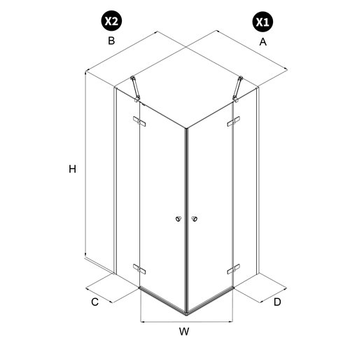 - kabina uniwersalna prawa/lewa - boki monotwane po dowolnej stronie wedle potrzeby miejsca - przykład dla kabiny 100x80 cm- bok 100 może być montowany po lewe lub prawej stronie - to samo dotyczy boku 80
