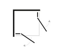 - kabina uniwersalna prawa/lewa - boki monotwane po dowolnej stronie wedle potrzeby miejsca - przykład dla kabiny 100x80 cm- bok 100 może być montowany po lewe lub prawej stronie - to samo dotyczy boku 80